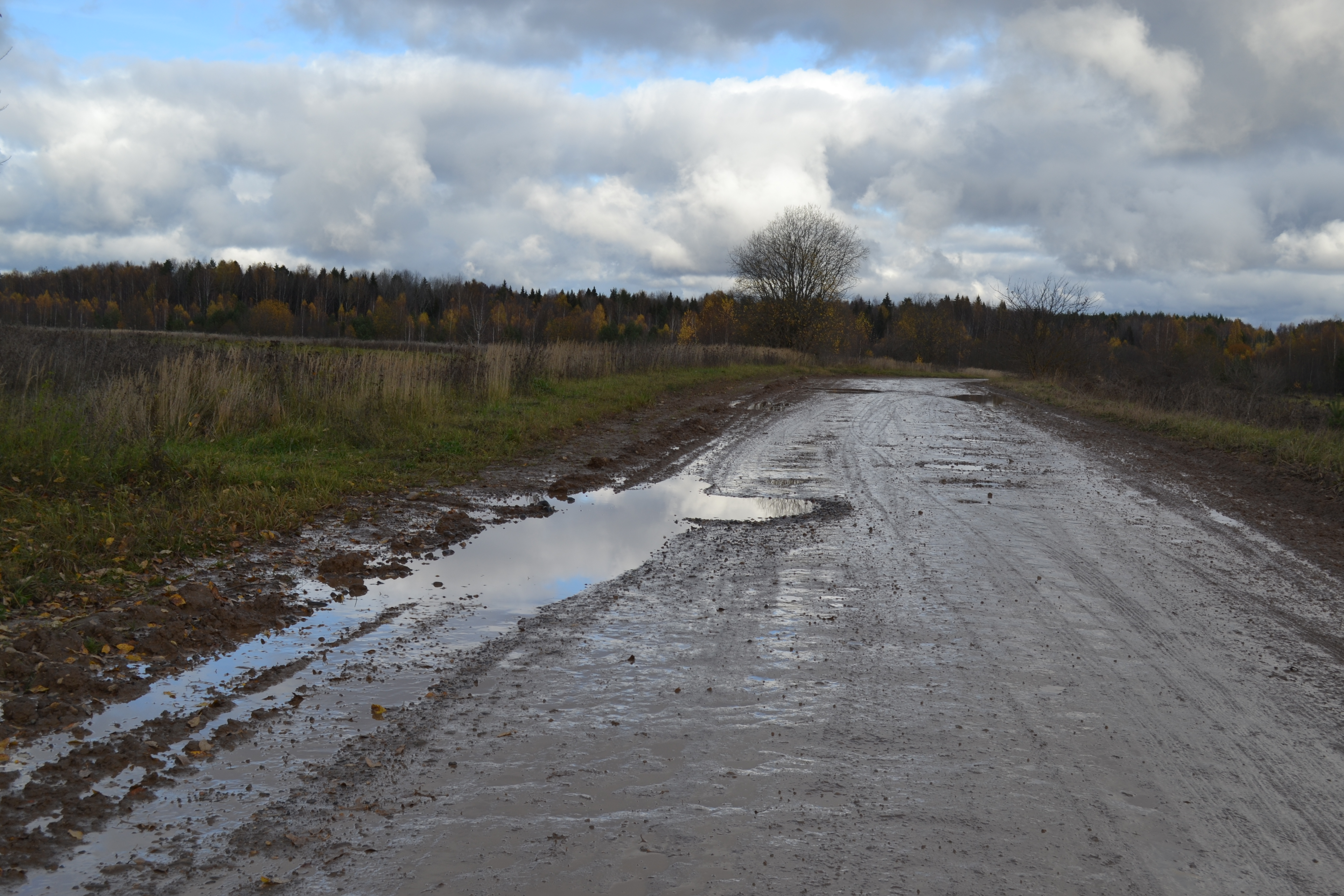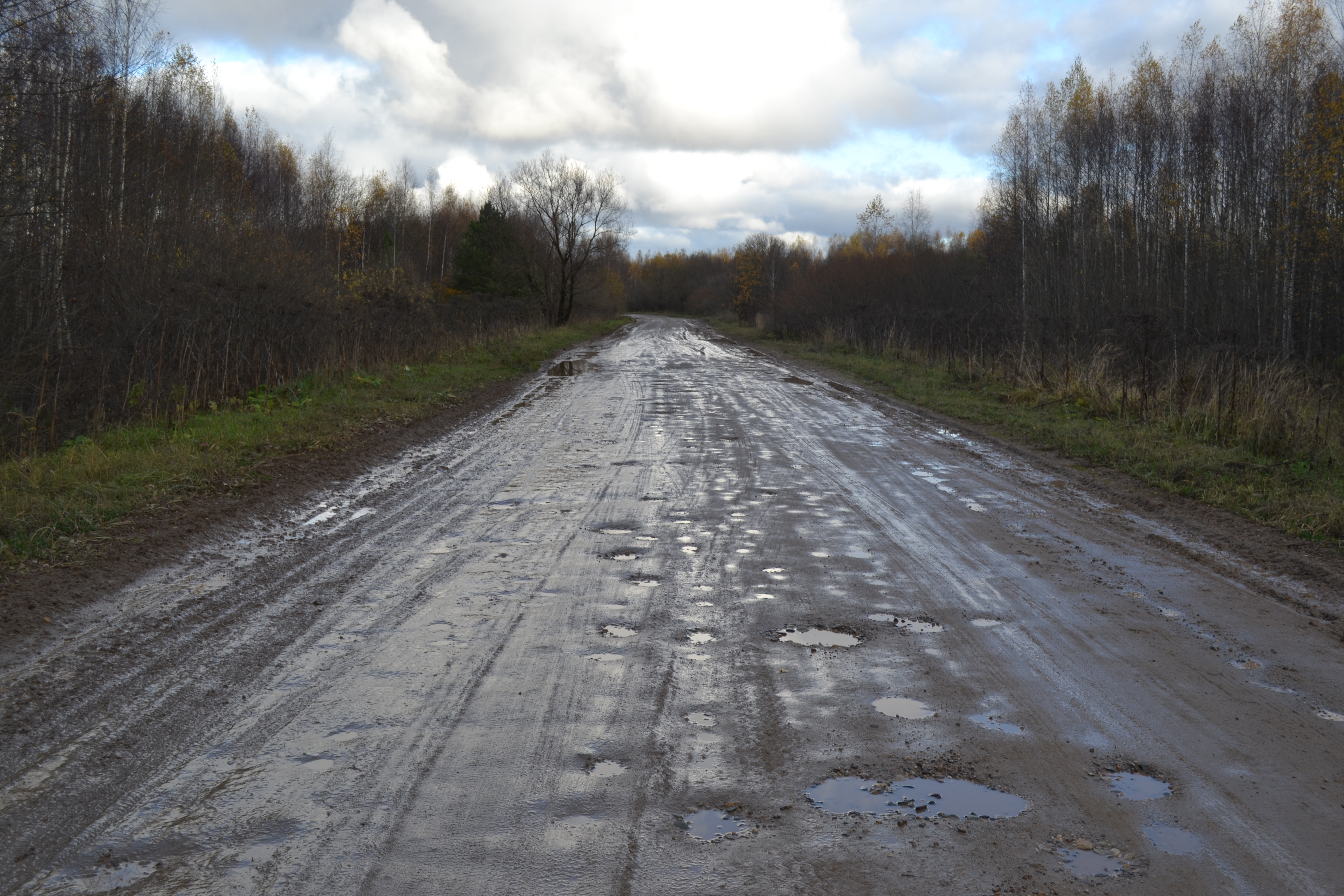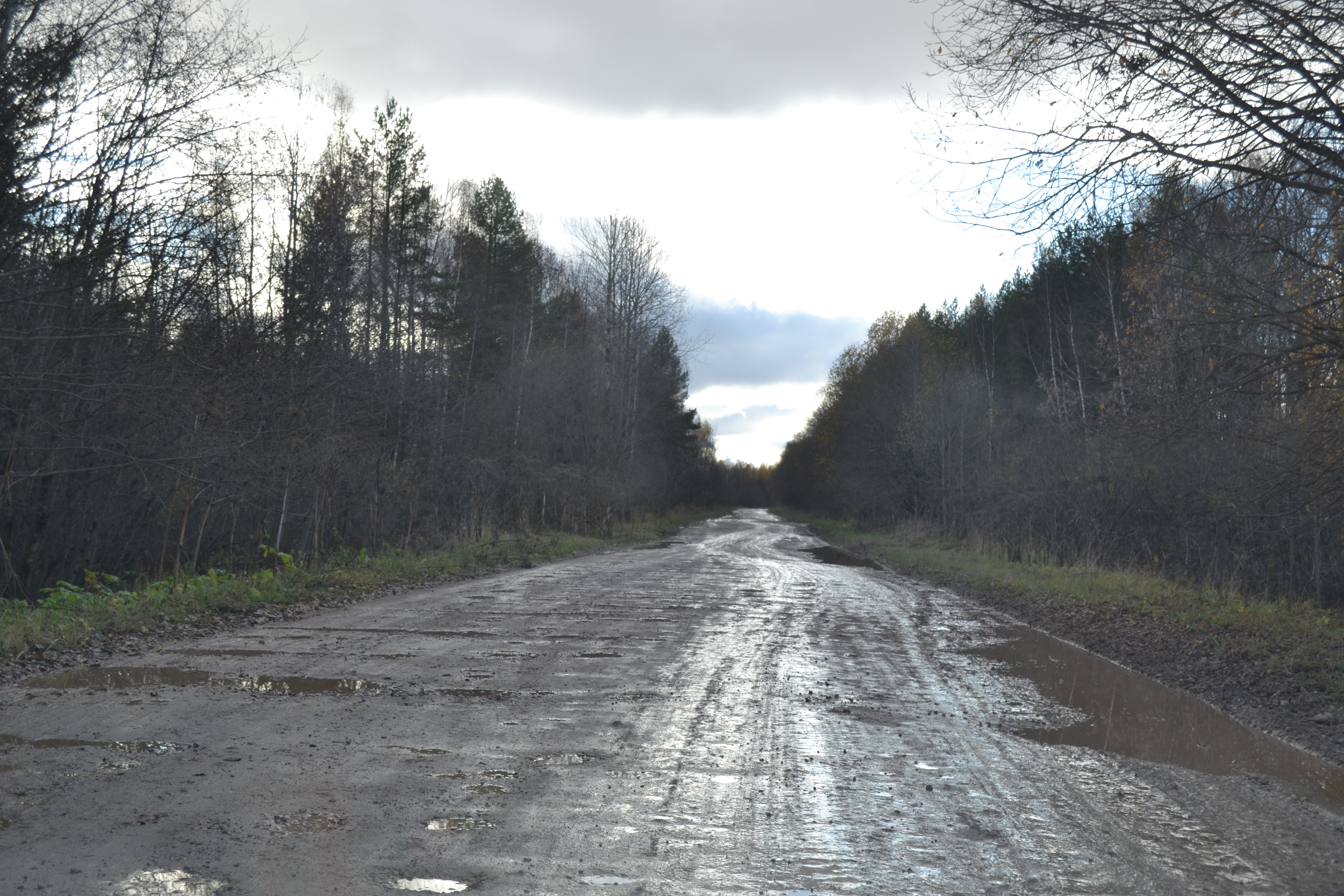 "Сейчас, дождливой осенью, дорога к нам просто ужасна, – говорит Людмила Вячеславовна. – Такое чувство, что она бесхозная. Да еще и большегрузы ее разбивают – возят уголь, щебень, древесину. Давно пора отремонтировать и мост через реку Колдому: он полностью размыт, там нет поручней и знаков, а мы вынуждены возить по нему детей. Моя мама прожила здесь 80 лет, и всё это время она мечтала о хорошей дороге, но ее так и не сделали..."