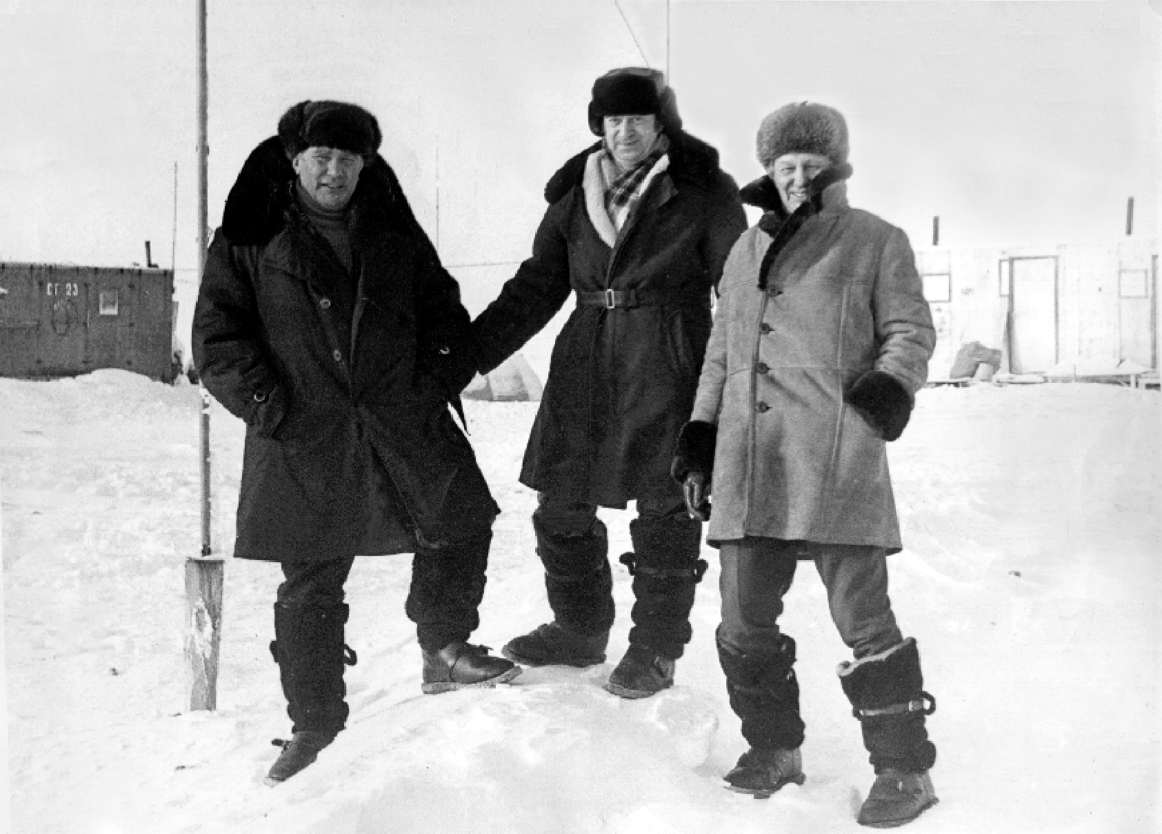 Как могло получиться, что такие разные люди вдруг оказались в одной поездке? Руслан Репкин нашел пересечения между знаменитым поэтом Михаилом Дудиным и Алексеем Фёдоровичем Трешниковым, о котором упоминает Санин, называя его "хозяином Арктики". Трёшников – известный ученый, географ, океанолог, главный редактор Атласа Арктики, в 1970-е годы сопровождал работы по созданию новых ледоколов типа "Арктика" для круглогодичной навигации по Северному морскому пути. Кроме того, с 1977 по 1991 год Трешников был президентом Географического общества СССР. Скорее всего, Дудин и Трёшников познакомились в Комитете защиты мира, куда они оба входили (такую версию озвучил Руслану Репкину зять Алексея Фёдоровича – Евгений Касаткин). Они не то чтобы дружили, но общались, бывали друг у друга в гостях. А когда поэт выразил желание побывать на полюсе, Трёшников не отказал.