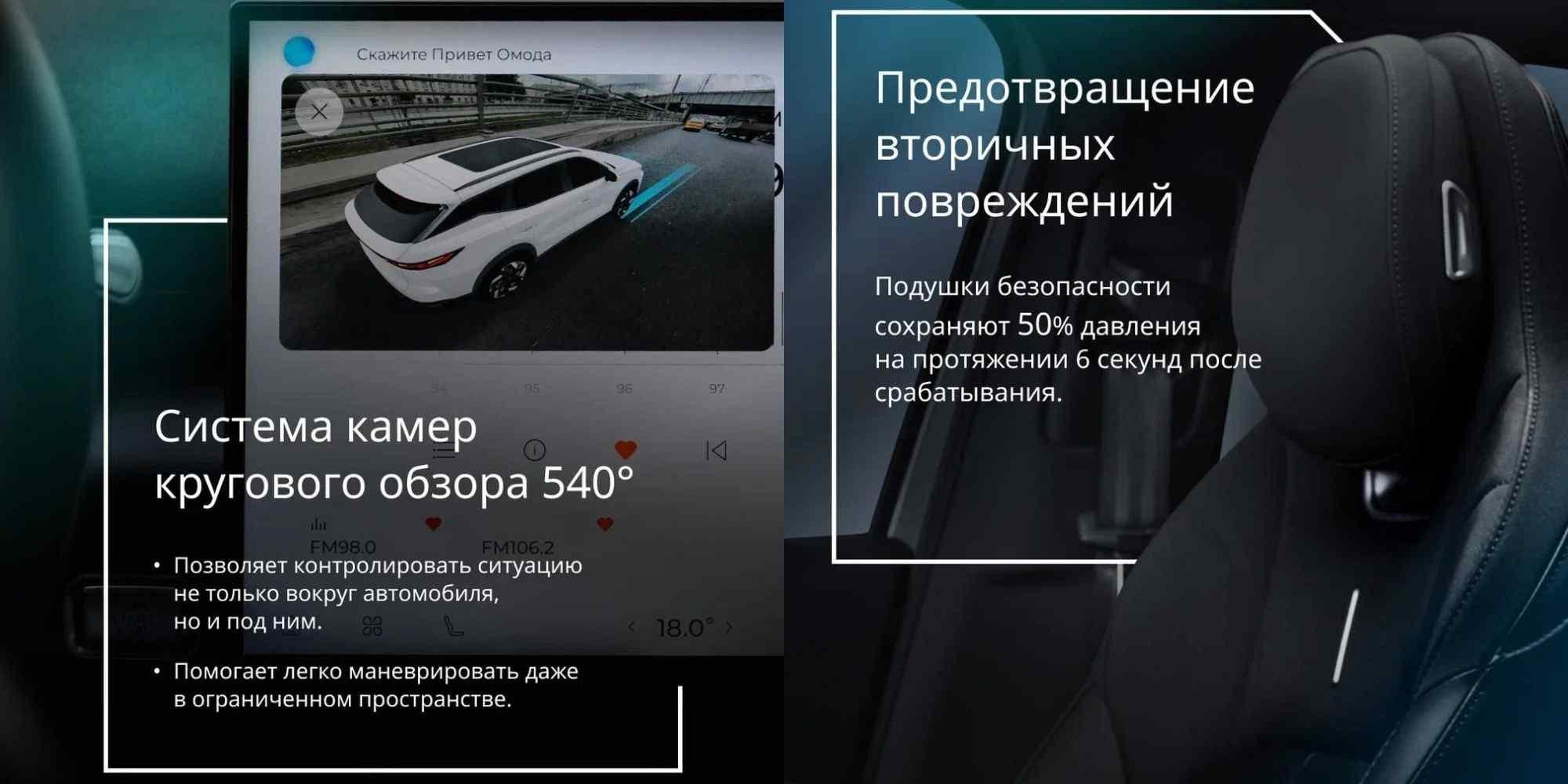 Кузов OMODA C7 выполнен с широким использованием высокопрочной стали, усилений в зонах ударов и рассчитан на устойчивость при боковых столкновениях и опрокидывании. Семь подушек безопасности, включая центральную между водителем и пассажиром, — решение, которое встречается даже не у всех «старых» брендов, и это прямой вклад в реальную, а не только заявленную безопасность.
