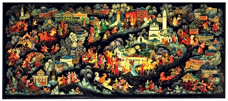 "У нас в музее съемочная группа выбрала артефактом панно художников Бориса и Калерии Кукулиевых "Проводы русской зимы в Палехе" 1975 г. Работа действительно интересная и необычная: на ней изображен исторический факт, рассказывающий о том, как после долгого перерыва в стране разрешили праздновать Масленицу, это было в 1958 г. В Палехе люди сами создавали костюмы, проводили праздник, продумывая развлечения, это и запечатлено в масштабной работе наших художников", – рассказала Известно.ру директор музея Палехского искусства Ольга Колесова.