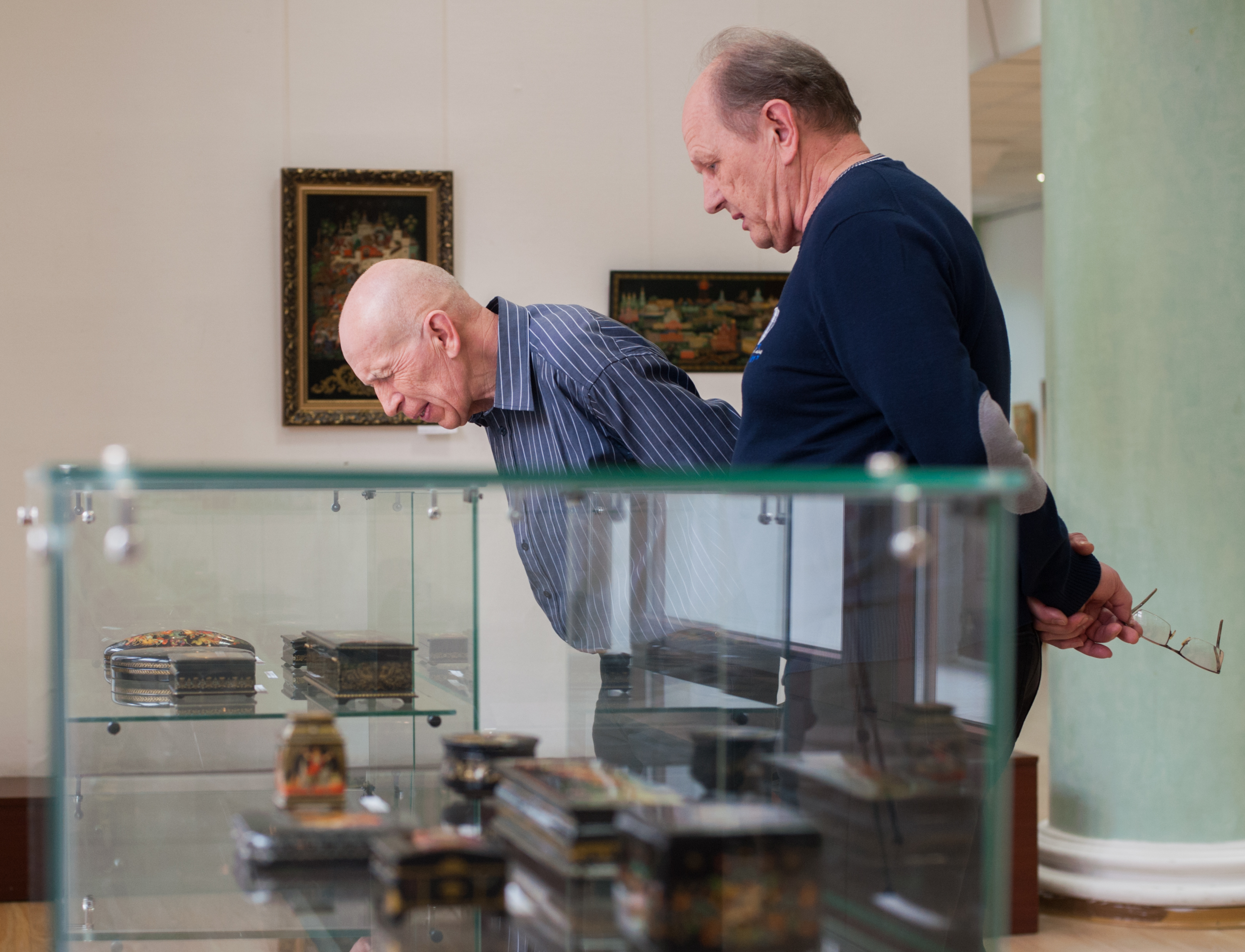 Весной 2021 г. в музейном комплексе "Конный двор" Сергиево-Посадского историко-художественного музея-заповедника проходила масштабная выставка палехской лаковой миниатюры с 1930-х до 2014 г., которую можно было посетить до 11 апреля.