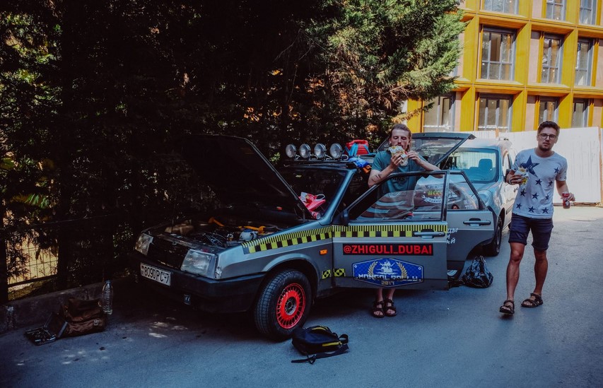 Путешествие 20-летних студентов состоялось ровно два года назад – 3 июня 2019 г. на старенькой "девятке", которую они купили у белорусов за 900 долларов. Машина ранее была в подобном безумном "рейсе": на ней в 2017 г. несколько молодых людей отправились из Великобритании в Монголию в Mongol Rally.
