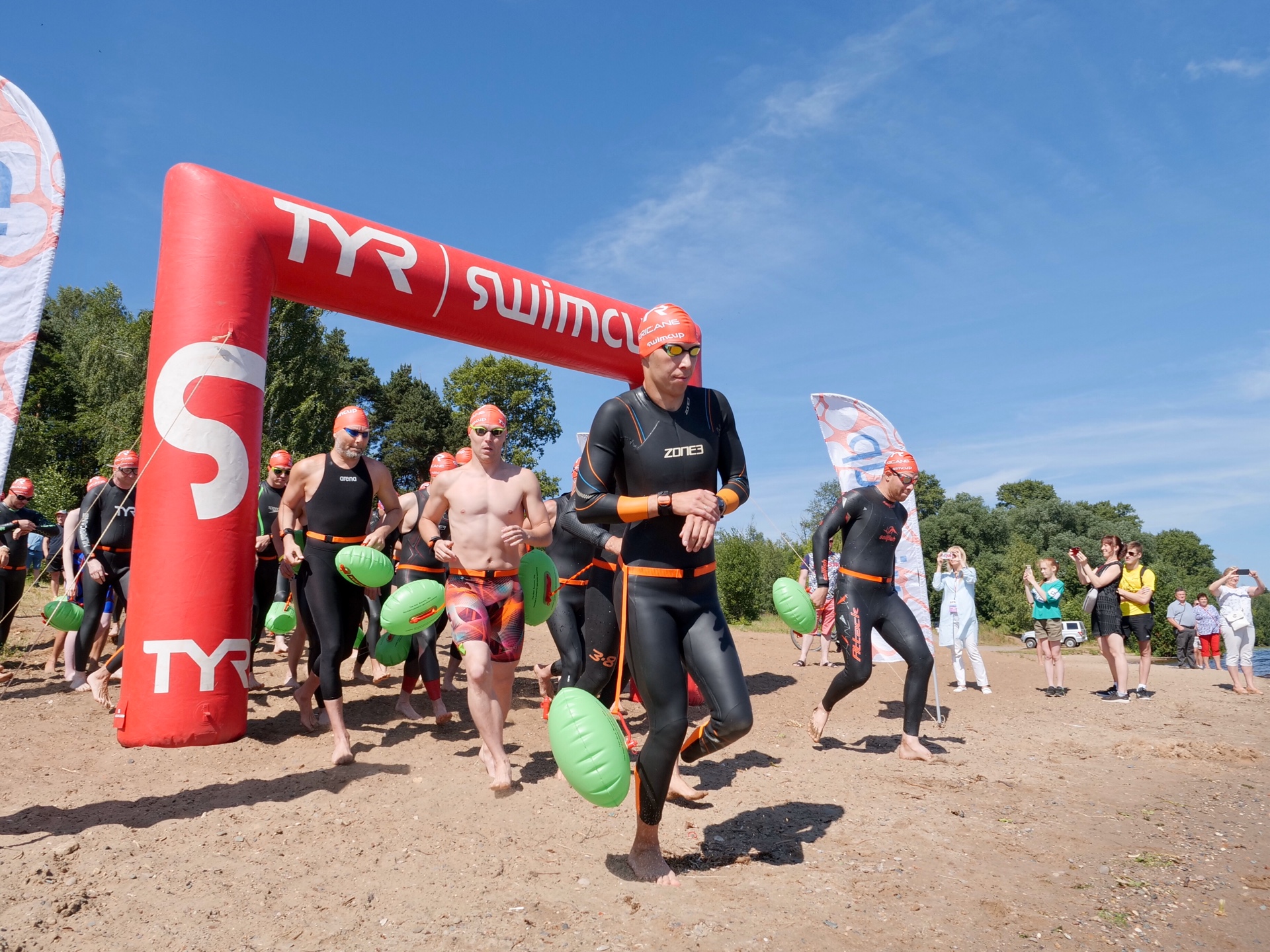 Обязательным условием для участников было наличие браслета на руке с встроенным чипом, этой рукой спортсмены касались финишной арки и таким образом судьи фиксировали результат. Также у каждого спортсмена на поясе был прицеплен буй (небольшая надувная подушка) ярко-зеленого цвета – он нужен для того, чтобы спортсменов было видно на воде, во время заплыва, а также для передышки. Если пловец уставал, то он мог опереться на буй и продолжить заплыв.