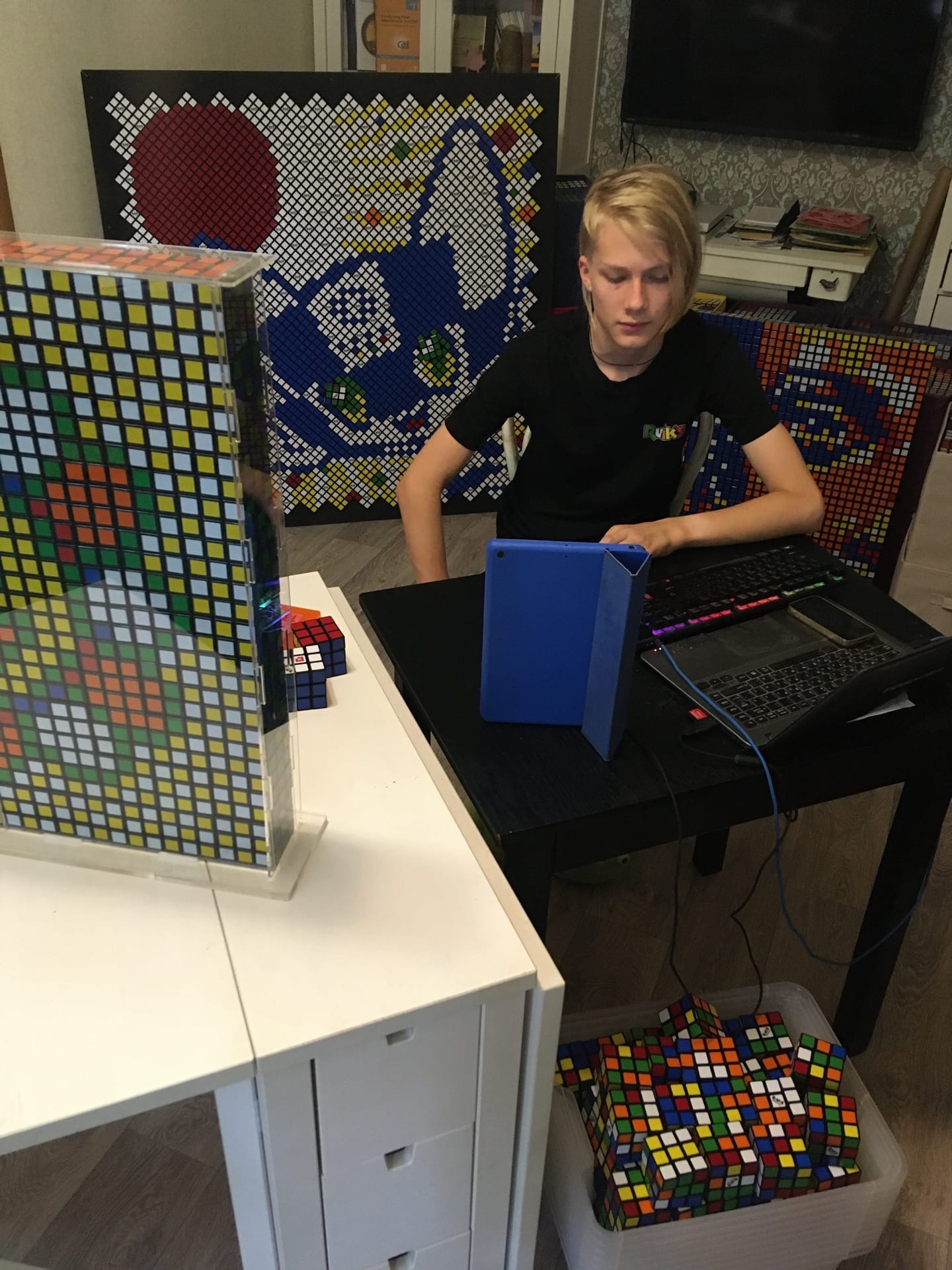 Мозаику из 365 кубиков Рубика в поддержку организаторов Олимпийских игр в Японии собрал 13-летний ивановец Андрей Маслов. На картине спидкубер изобразил один из символов Игр – сине-белого Мирайтову. Об этом Андрей Маслов сообщил на своей странице в "Инстаграм" .