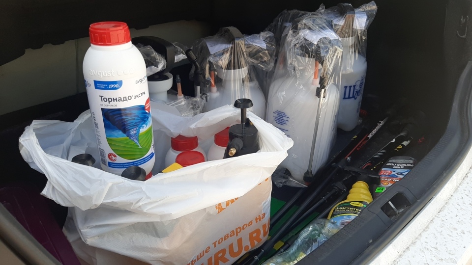 Сологубовские обработали гербицидом "Торнадо" обочины лесной дороги от Зобовского леса до поворота на горнолыжную трассу в Миловке. За неделю кусты борщевика пожухли и пожелтели.