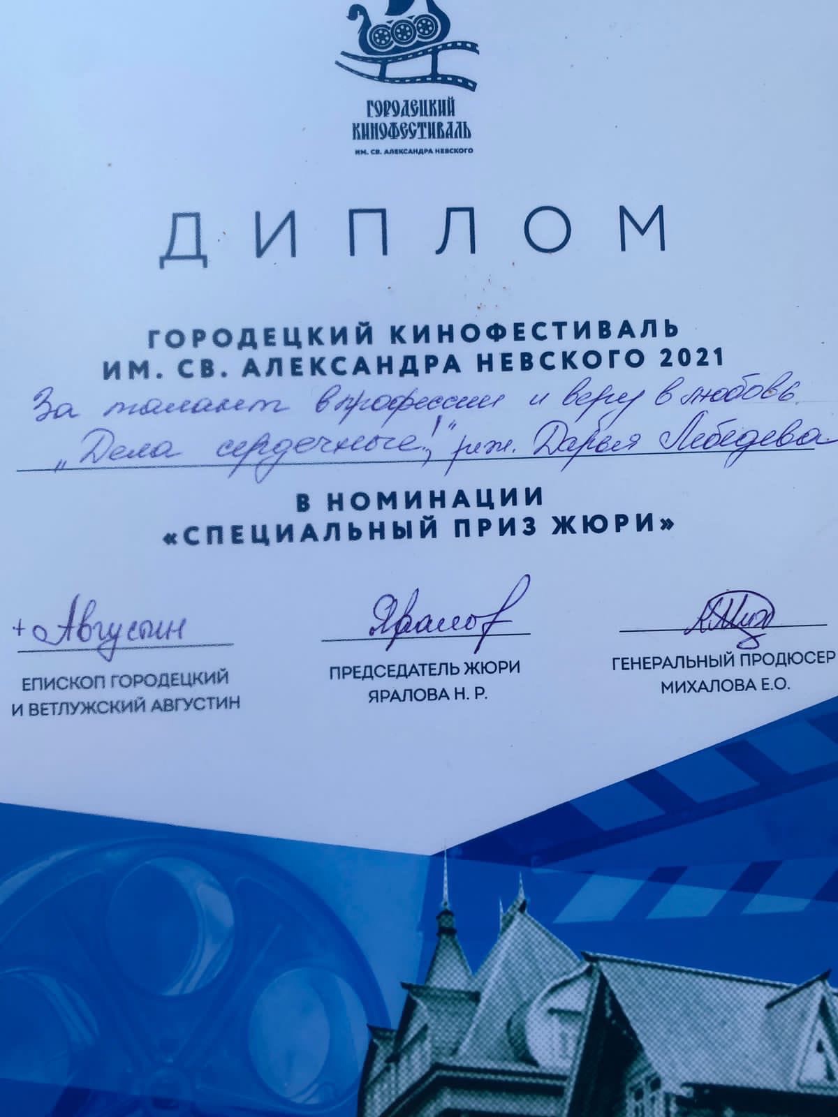 Ивановский режиссер Дарья Лебедева рассказала Известно.ру, что за восьмиминутную романтическую комедию "Дела сердечные!" получила специальный приз жюри на Городецком кинофестивале корокометражек, который прошел в выходные, 22–24 октября, в Нижегородской области. Организаторы фестиваля список победителей еще не обнародовали.