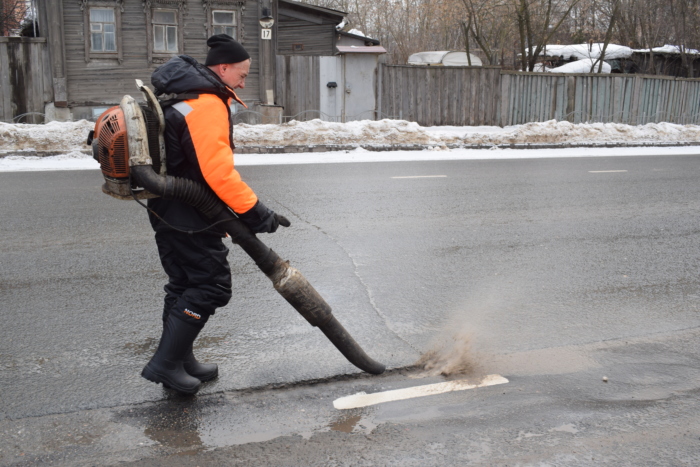 "Работы по ямочному ремонту производятся по погодным условиям. Перед заливкой выбоины очищаются трактором и просушиваются. Температура литой смеси составляет порядка 200 °C. Это позволяет моментально испарять оставшуюся в яме влагу", – пишет пресс-служба со ссылкой на слова замначальника управления благоустройства администрации города Артёма Осинкина.