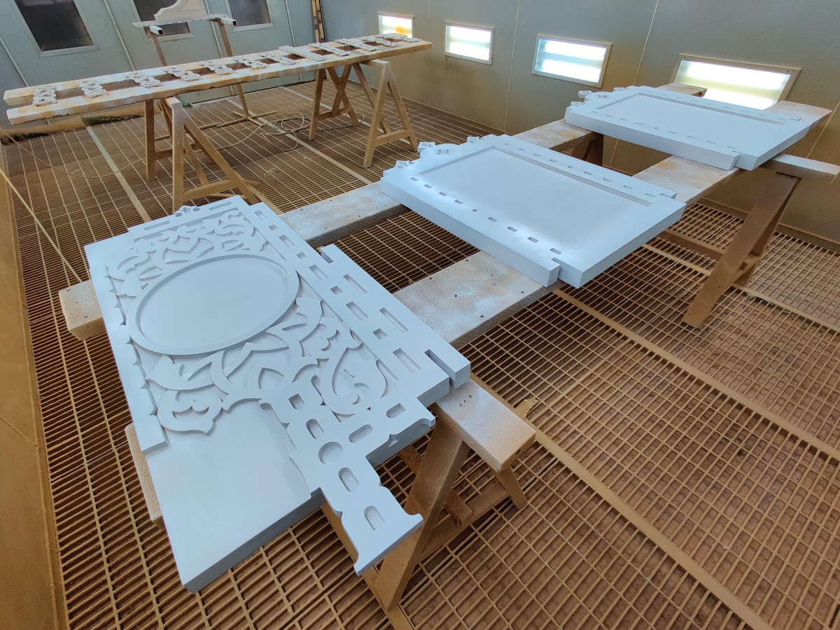 "Чтобы удешевить иконостас, иконы мы сделали не написанные, а напечатанные на холсте. Это не первый наш опыт – такую технику мы не раз использовали при изготовлении иконостасов в другие храмы. Иконостас для Шуйской воинской части выполнен полностью из МДФ с отделкой светлой эмалью и выкрасками фона. Полностью готов он будет к началу мая", – отметила собеседница.