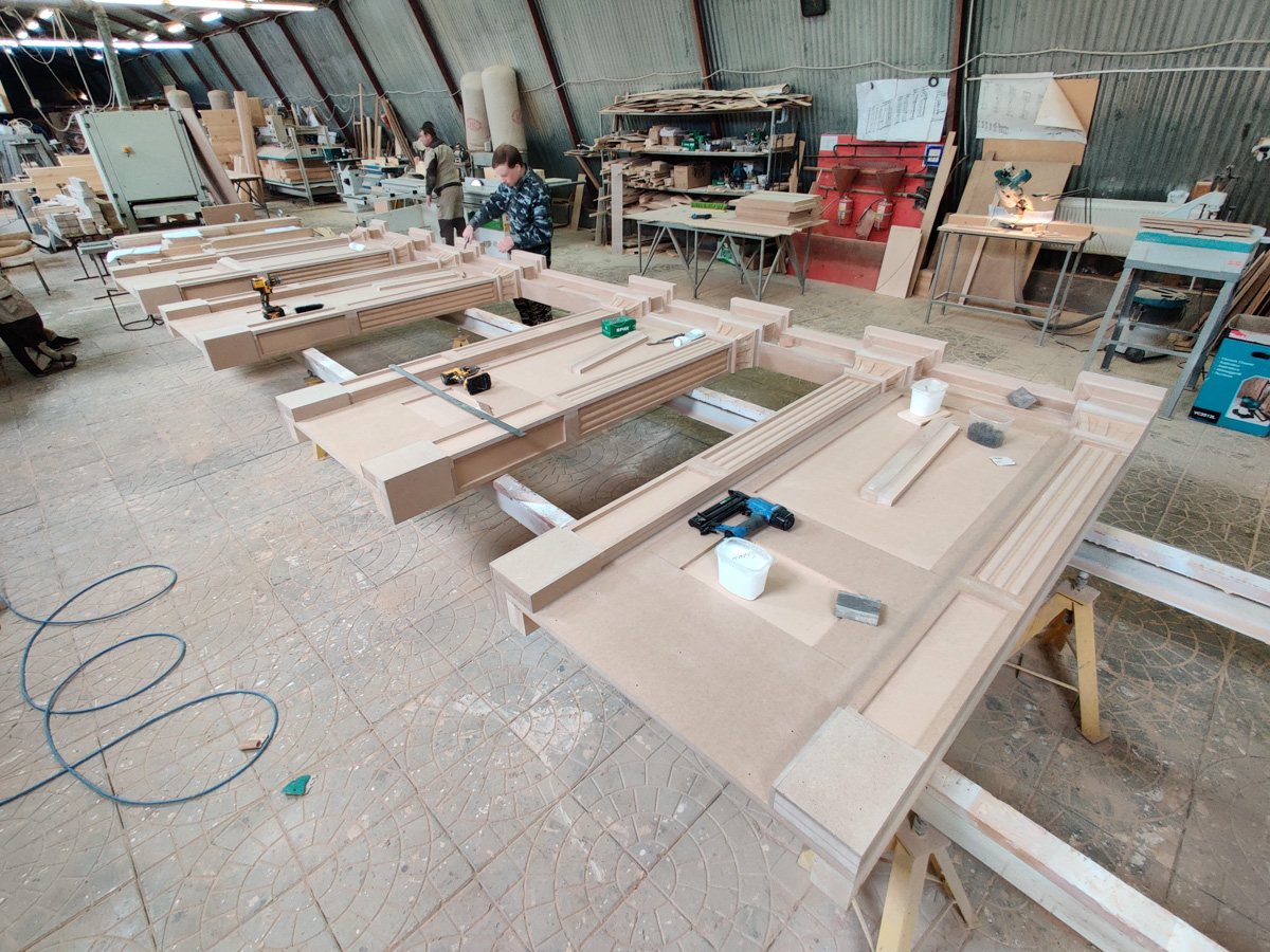 Художники мастерской "Палехский иконостас" сделали для храма воинской части в Шуе шестиметровый иконостас. На изготовление резьбы потратили 12 дней, неделя ушла на заготовку и сборку иконостаса, сейчас изделие мастера передали в покраску. Об этом Известно.ру рассказала руководитель коммерческого отдела мастерской Ольга Бовтюнь.
