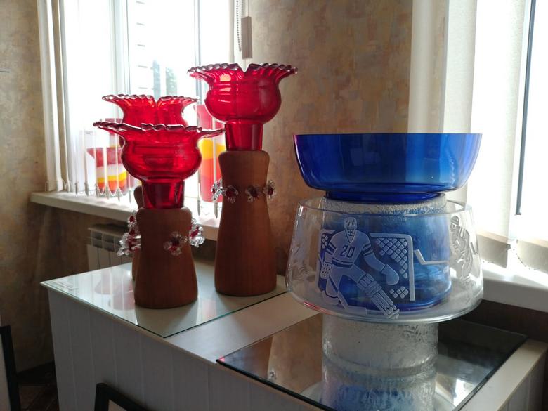 "Приручение" цветного стекла – материала сложного, капризного, часто непредсказуемого, но именно поэтому таящего в себе так много возможностей для творчества – стало "делом жизни" Александра Тимофеева. С 1970-х годов, посещая заводы в Гусь-Хрустальном и Дятькове, он создает десятки объемных декоративных композиций из цветного стекла, выполненных с применением разных технических приемов, многие из которых придумывались автором, чтобы максимально полно выразить творческую задачу", – пишет музей в соцсети.