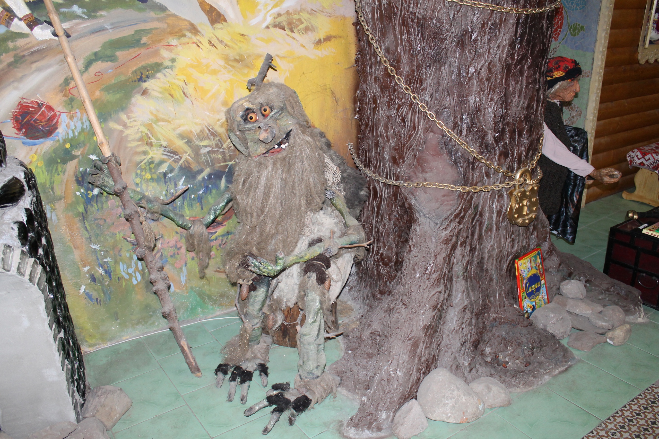 Стены музея красочно и сказочно расписала юрьевецкая художница Анастасия Смыслова, местные мастера делали своими руками сказочных героев, а хозяева столярных мастерских – изделия русского быта из дерева. Музей получился интерактивным, здесь всё можно трогать, открывать, будут проходить мастер-классы, в честь сказок Пушкина здесь появится огромный дуб с Котом ученым.