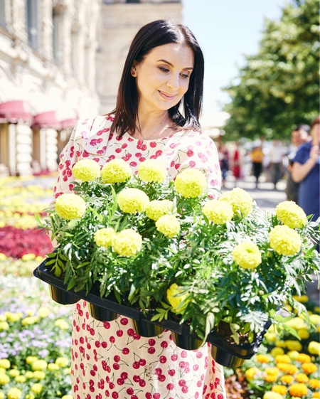 Российская актриса Екатерина Стриженова на ежегодном фестивале цветов около ГУМа в Москве сажала цветы в струящемся платье из ткани "Шуйских ситцев", сообщило текстильное предприятие в "ВКонтакте", а также фотографии опубликовала сама телеведущая в своих соцсетях.