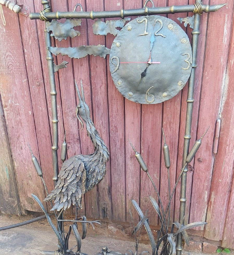 "К художественной ковке и сварке меня привел забор. Лет восемь назад я сварил его для себя из профлиста – варил сам каждый день, без знаний и навыков. И у меня получилось. Спустя время увлекся ковкой и вот уже пять лет это дело для души, мое хобби", – отмечает Дмитрий Чистяков. Кованая лилия, покрашенная автомобильной краской под лак, скамейка, часы, вешалка – понемногу ассортимент кованых изделий мастера стал расширяться и сейчас его затянула "птичья" тема. Сначала сделал часы-панно с цаплей и стилизацией болота, посадил птиц на вешалку и на почтовый ящик, затем вдохновился воронами.