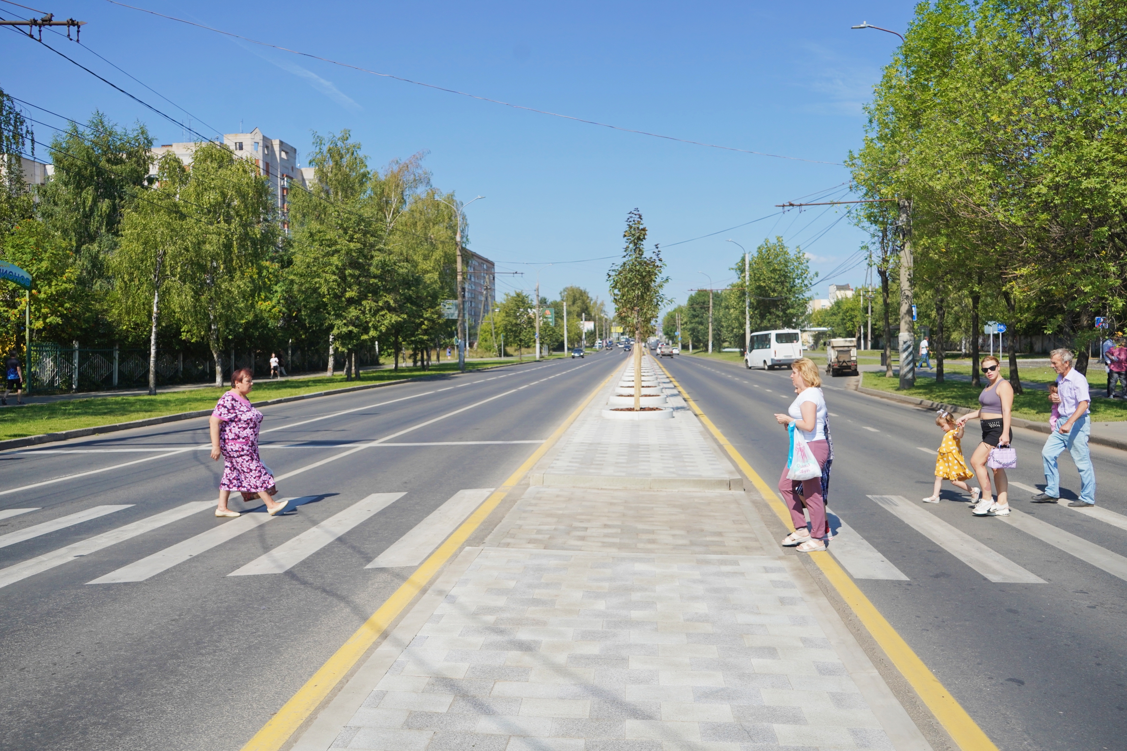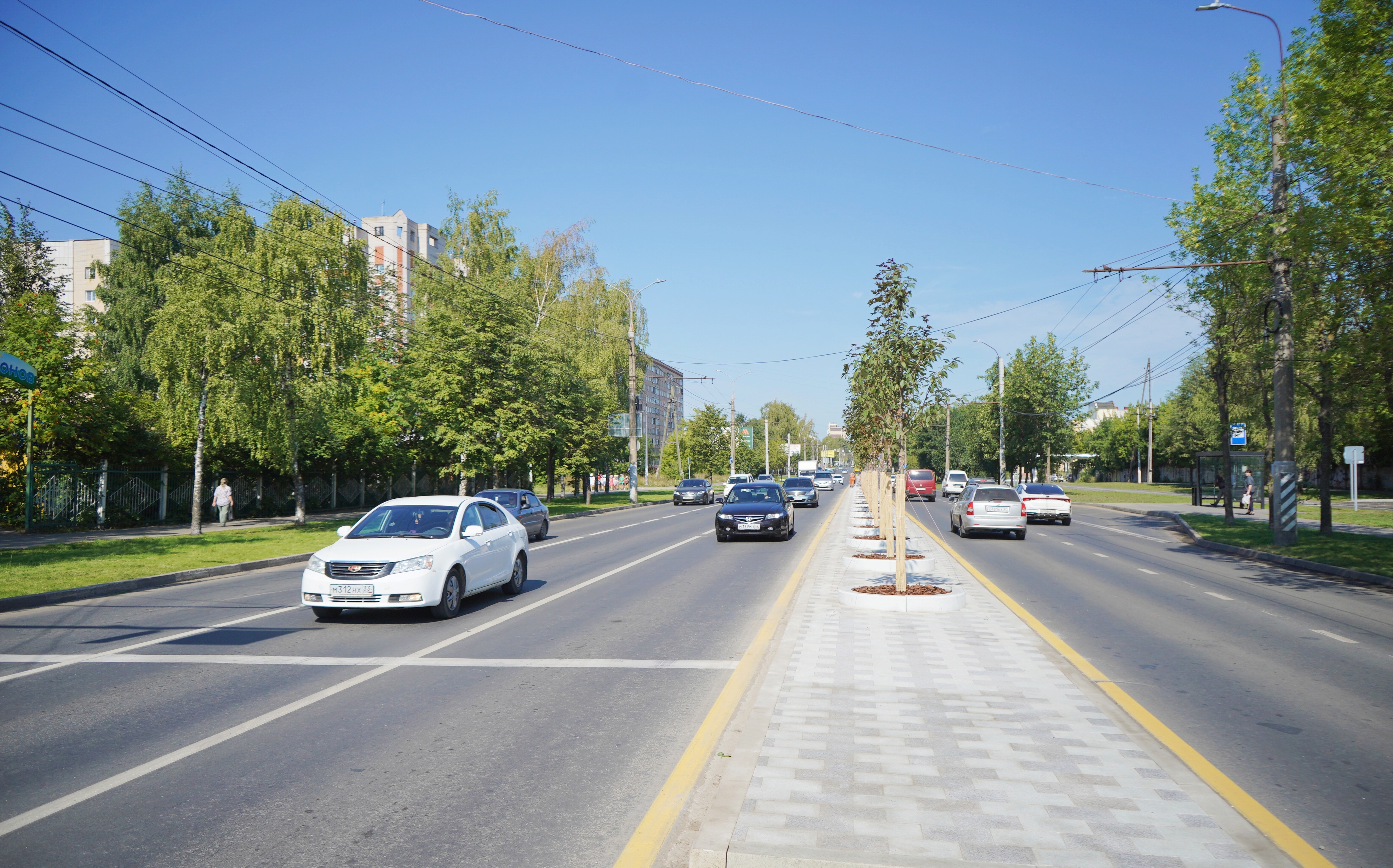Рабочие поменяли 3,3 километра асфальта, обустроили тротуары, велодорожки, 14 островков безопасности, расширили проезжую часть у переходно-скоростных полос, у пешеходных переходов выложил тактильную плитку и перенес опоры контактной сети троллейбуса.