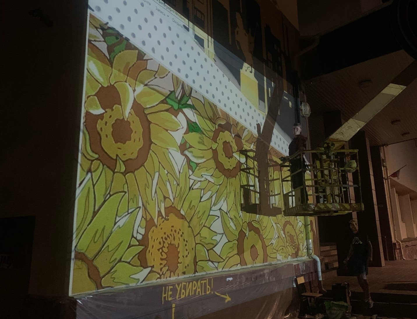 Стену Ивановского политеха украсил текстильный мурал с подсолнухами