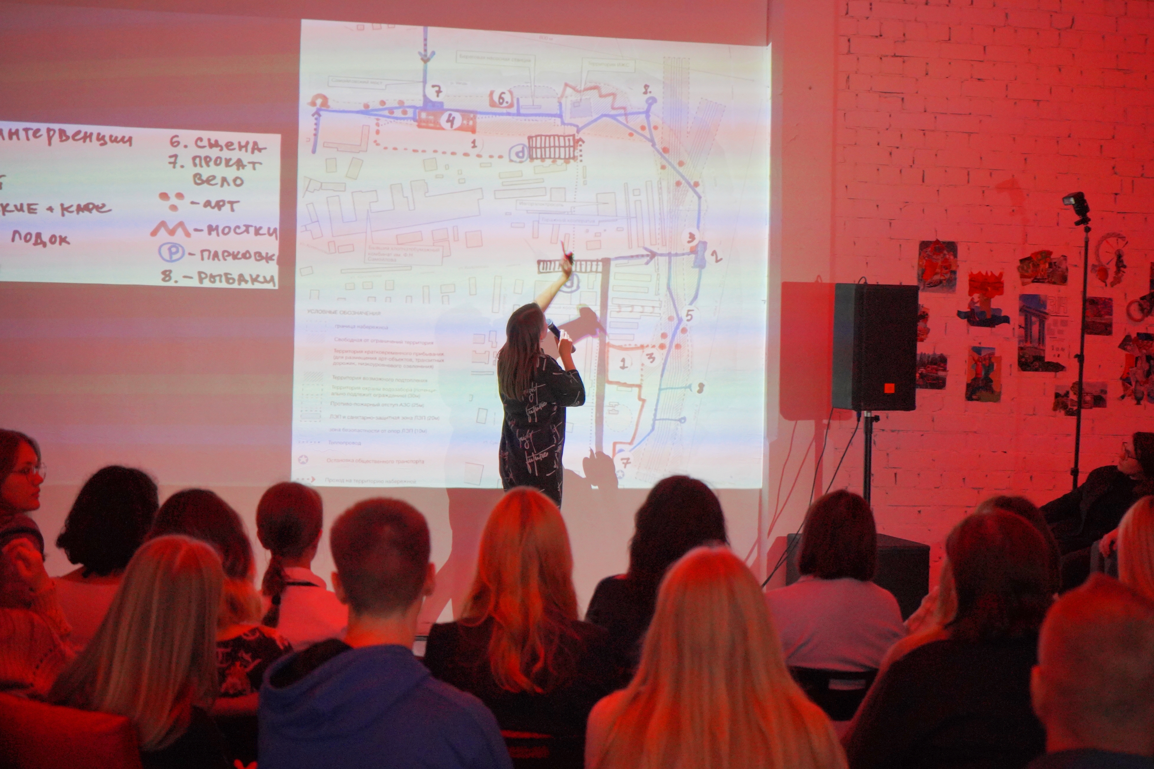 Первая группа представила проект "Контрреволюция. Красный, потому что кирпич". По задумке авторов, арт-объекты и дорожки на набережной должны полностью или частично состоять из красного кирпича – стройматериала зданий ивановских фабрик и памятников конструктивизма. Авторы проекта предлагают изготовить тематические сувениры – небольшие красные кирпичики с названием облцентра – и продавать их на набережной, чтобы туристы “могли увезти с собой частичку Иванова”.