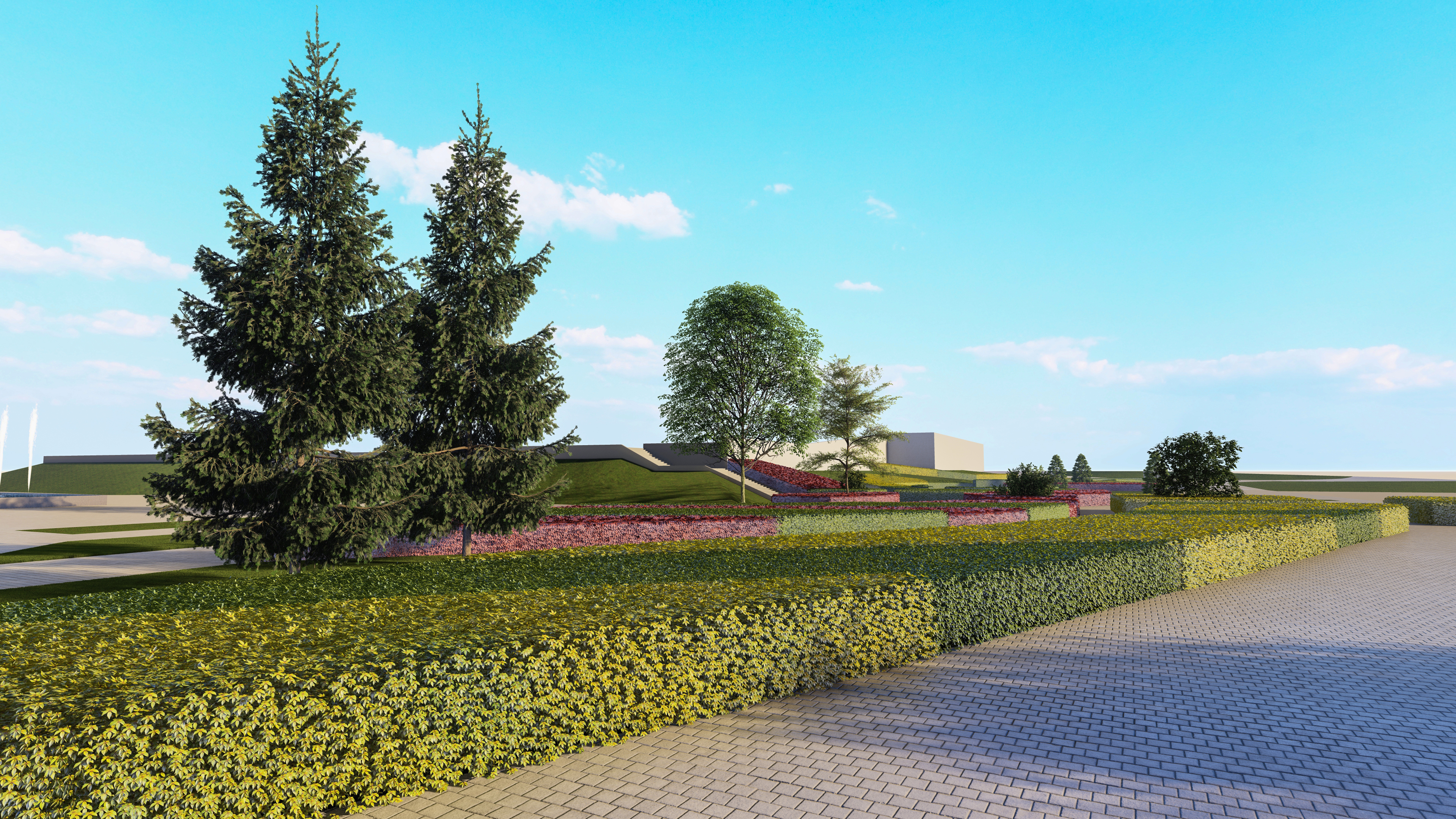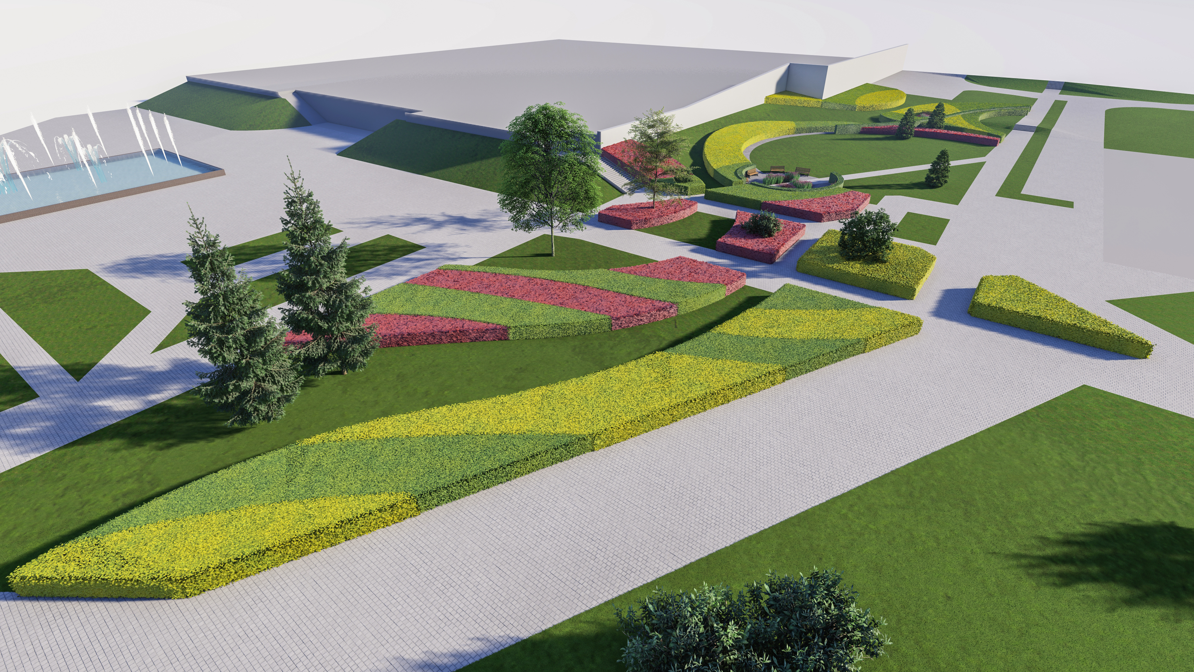 В качестве зеленых насаждений на участке появятся декоративные кустарники – пузыреплодники с красной ("ред барон") и желтой ("лютеус") листвой, а также кизильник блестящий. Растения будут высажены "волнами".