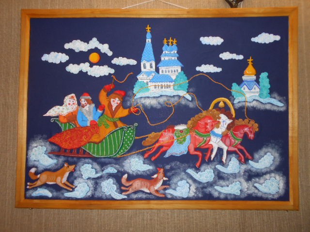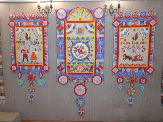 По словам Михаила Борисовича, на выставке представлено более 50 работ палехских мастеров: ткачество и вышивка, художественное вязание и роспись по дереву, куклы, лоскутное шитье…