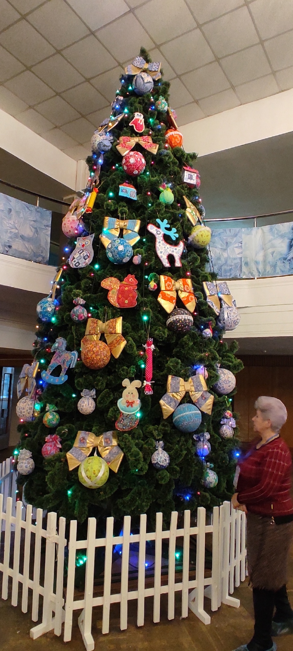 "Наши ситцевые шары и банты, которые мы с энтузиазмом клеили последние две недели, украсили ёлку, которая сейчас стоит на втором этаже ЦКиО. Так что, ивановцы, торопитесь посмотреть! До Нового года осталось всего две недели!", − отметила мастерица.