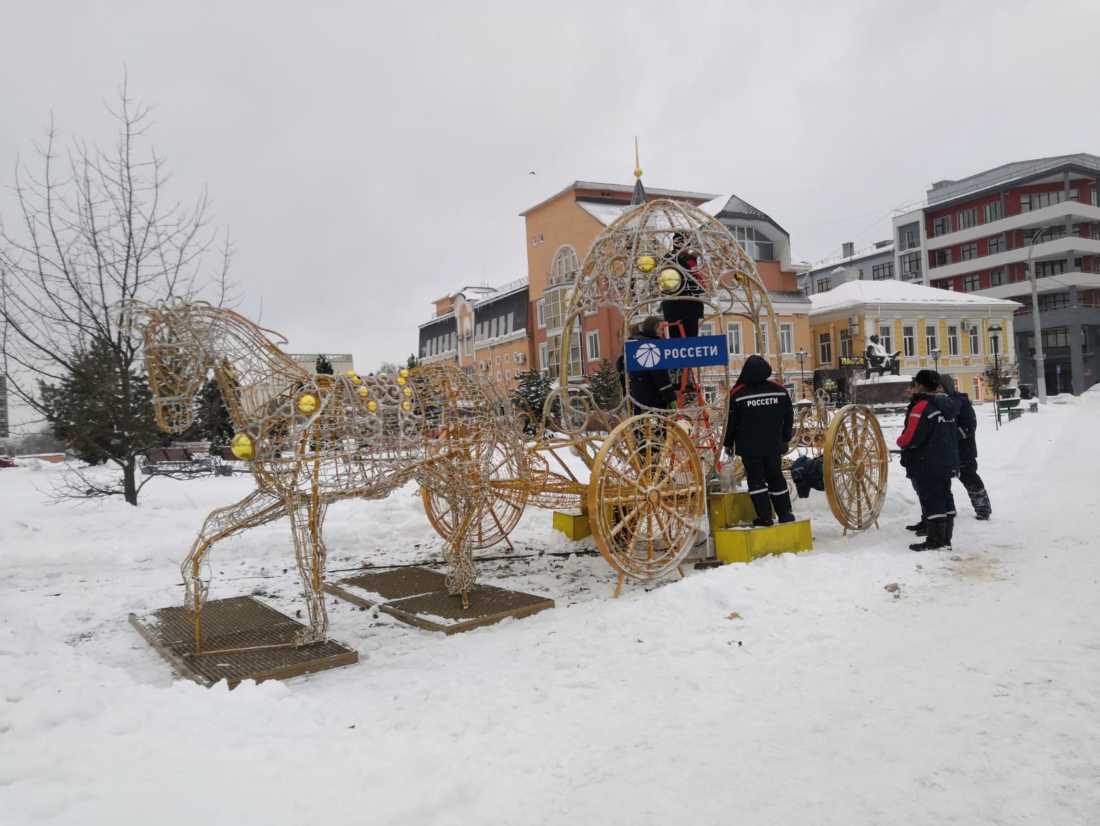 В парках зажглась иллюминация. "Карета, которая так полюбилась нашим горожанам, появится как и прежде в сквере Якова Гарелина. В темное время суток инсталляция подсвечивается. Уверены, что этом году нам удастся создать необходимое праздничное настроение для жителей нашего города", – цитирует пресс-служба Владимира Кудрявцева.
