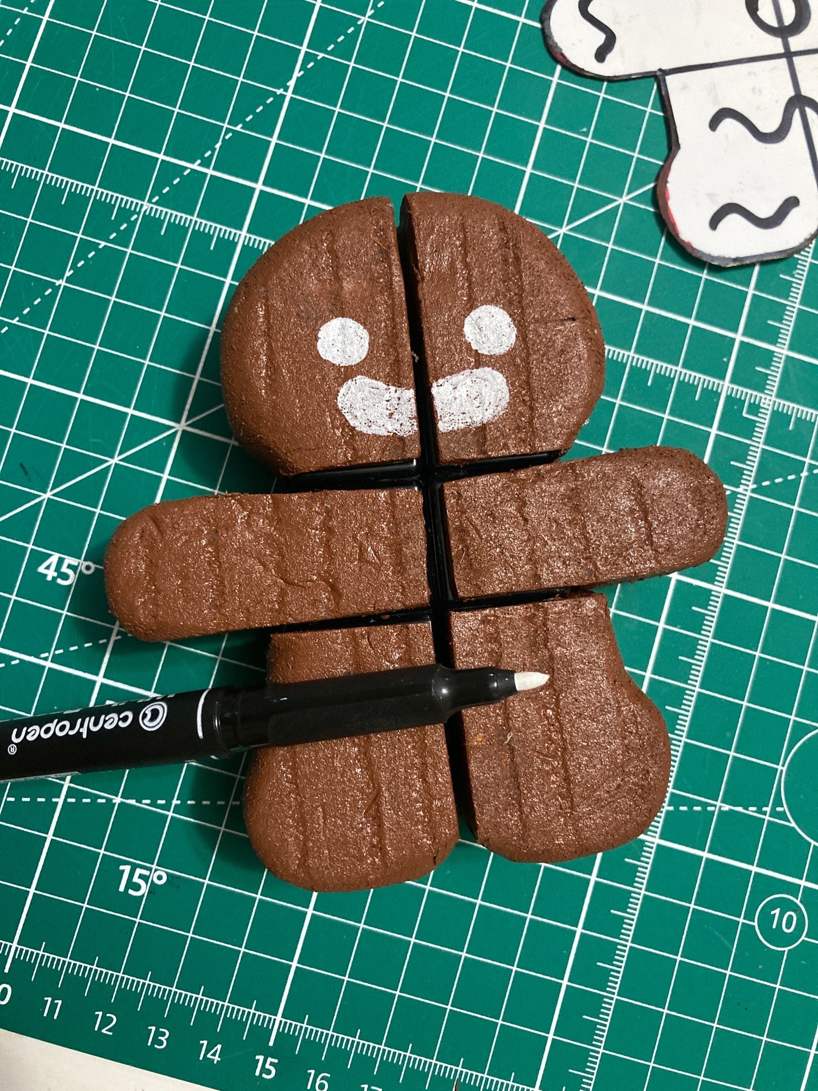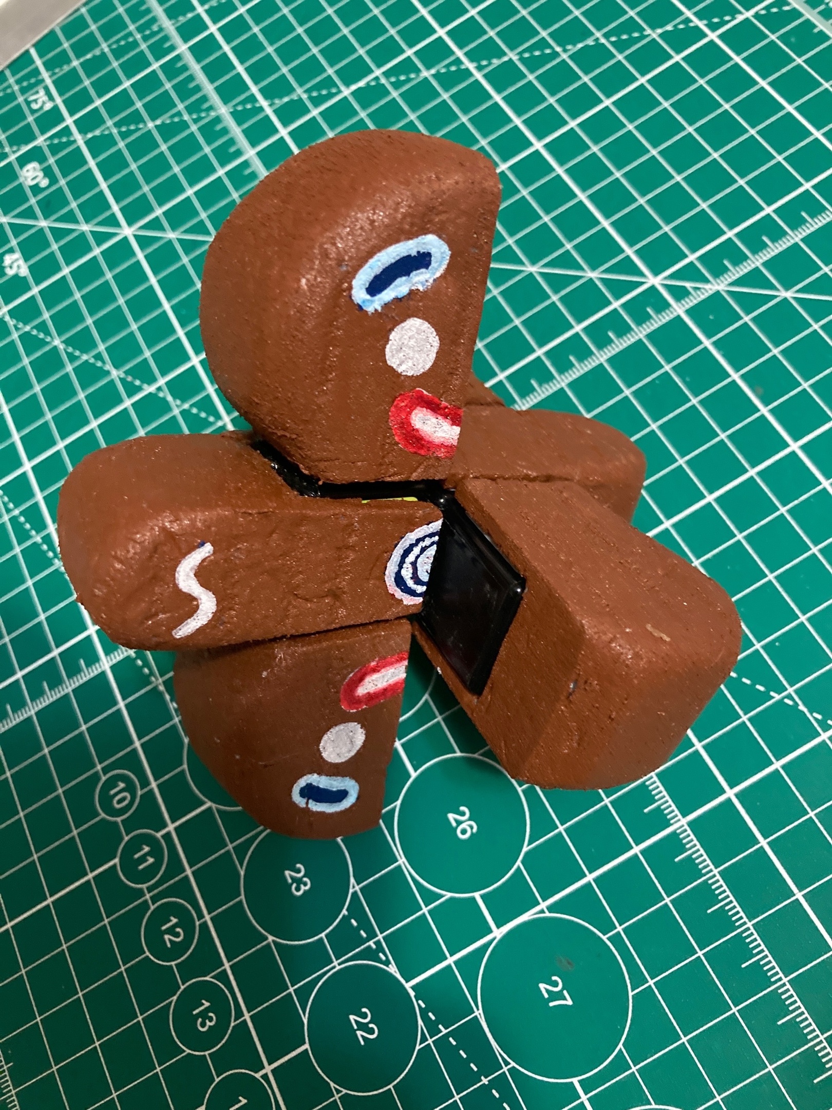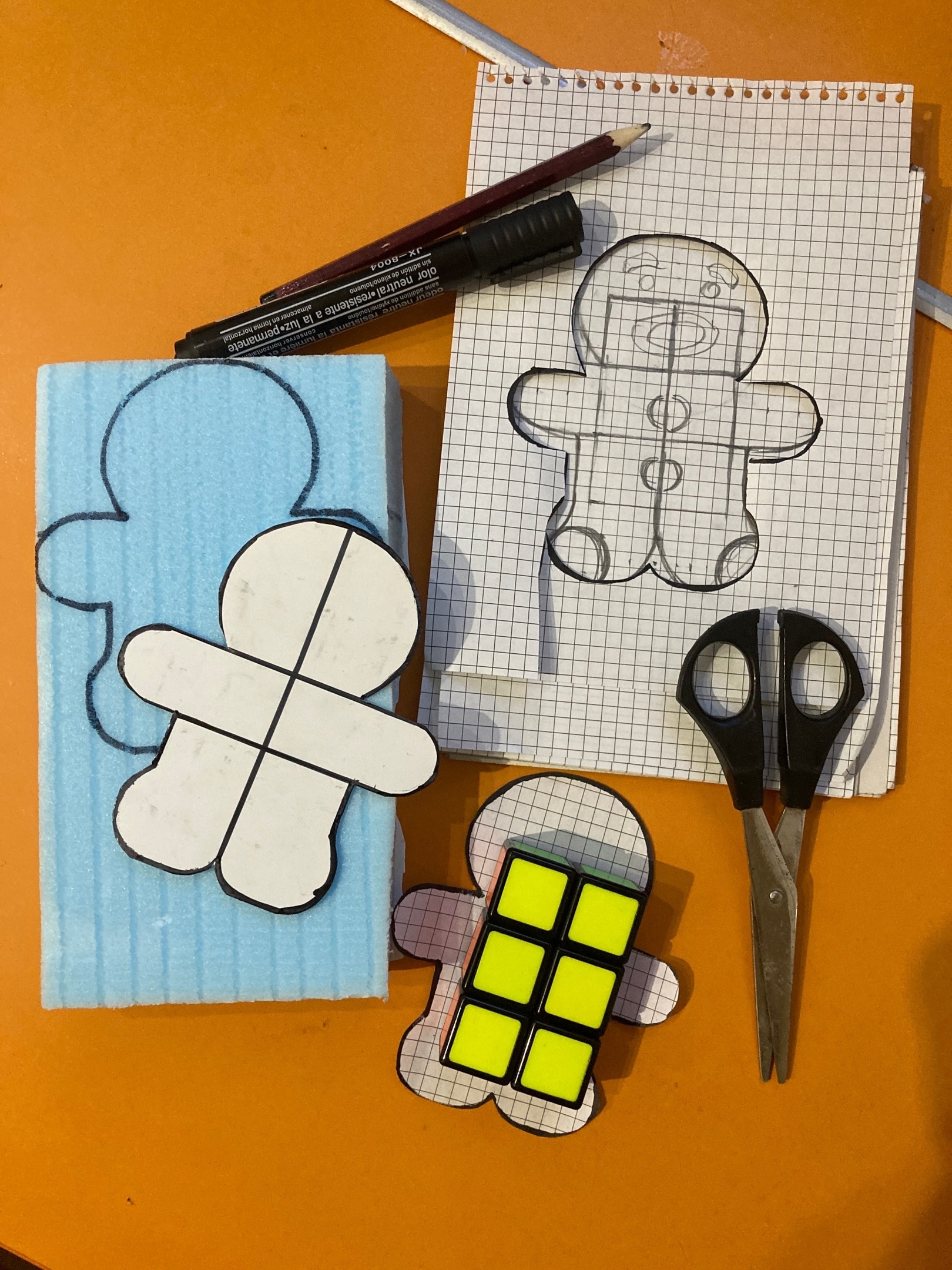 "Это головоломка на основе так называемого кубоида 1x2x3. Состоит из шести элементов – очень простая, любой соберет. Мы взяли за основу форму пряничного человечка, поскольку силуэт узнаваемый. Сделали руками макет из пеноматериала, покрасили, зафиксировали детали на кубоиде, который стал сердцевиной. Так получилась новая головоломка", − рассказал Известно.ру отец Андрея Дмитрий Маслов.