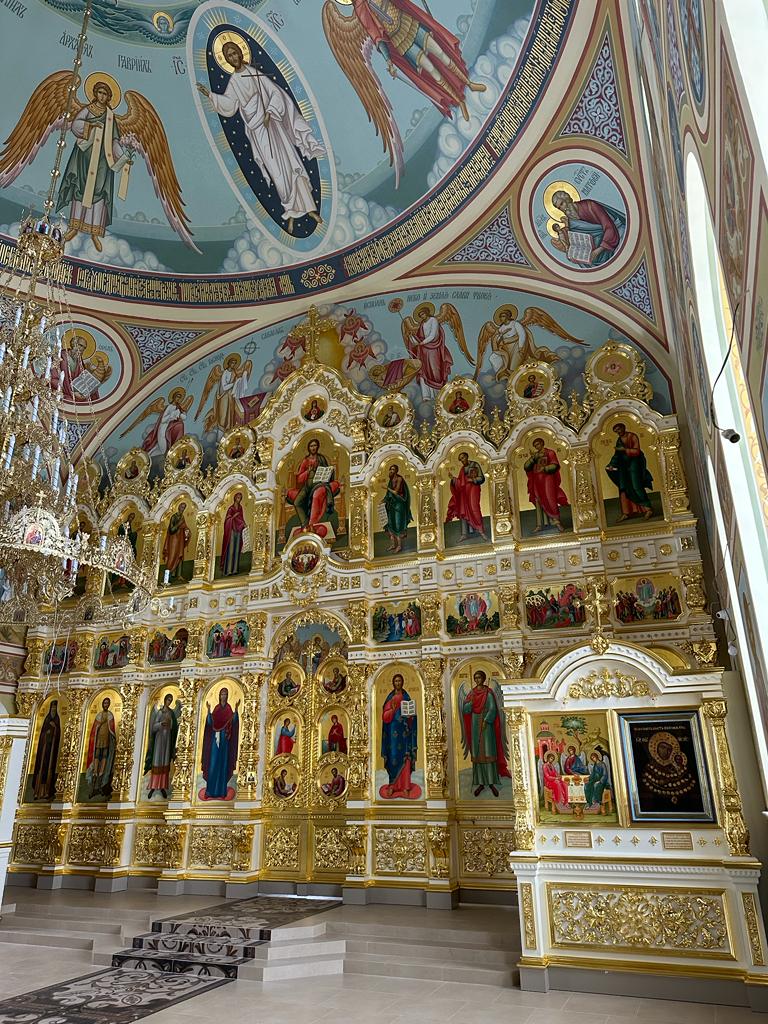 В марте прошлого года специалисты смонтировали иконостас, в апреле – утварь (клиросные, запрестольный киоты, жертвенник, дьяконник, престол, аналои), а в июне приступили к росписи стен. Композиции крупные – в ширину 1,3 м, в высоту 6-7 метров.