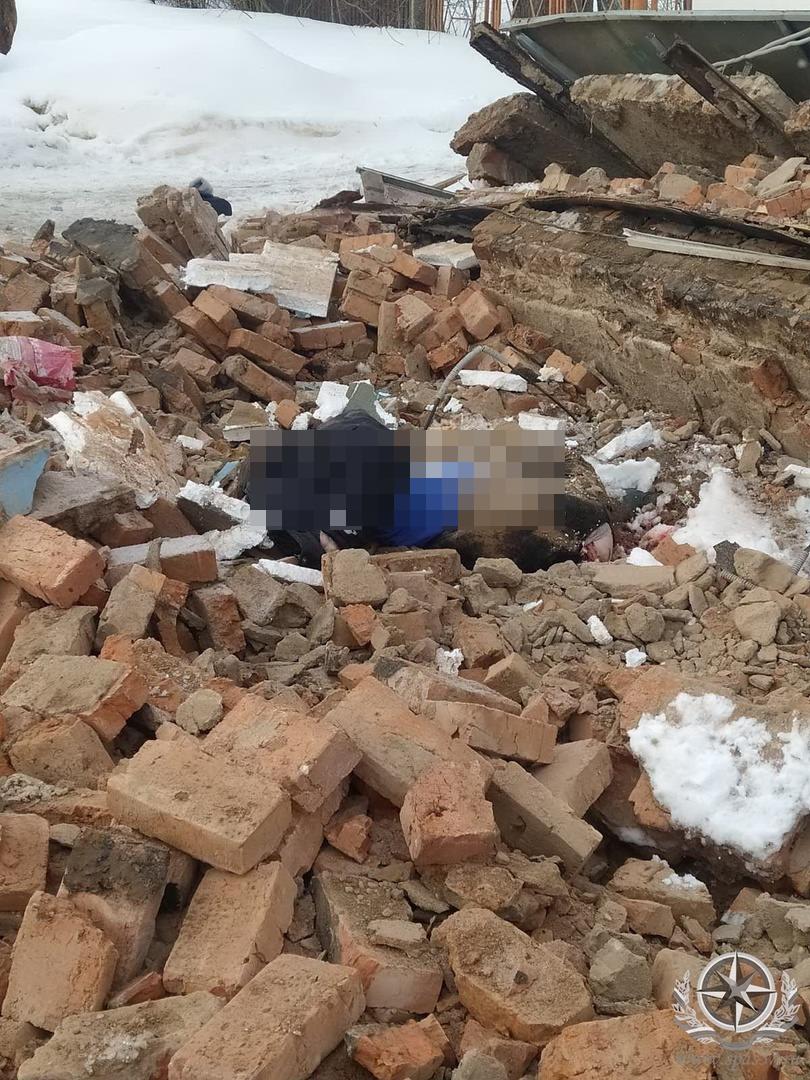 На месте происшествия работал кинолог с собакой, которая помогла найти место гибели жертвы ЧП. Тело находилось под кирпичными завалами.
