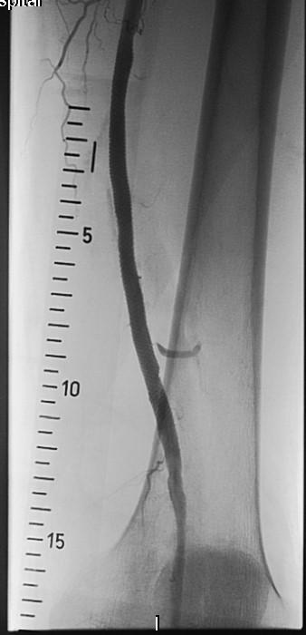 Как рассказали медики, к ним за помощью обратился пожилой мужчина, он жаловался на сильные боли в левой ноге при ходьбе даже на самые короткие расстояния, а также в состоянии покоя. Врачи обнаружили у 76-летнего пациента критическое сужение левой поверхностной бедренной артерии. Если бы мужчина еще немного затянул с походом в больницу, то развилась бы гангрена ноги, скорее всего, ее пришлось бы ампутировать.