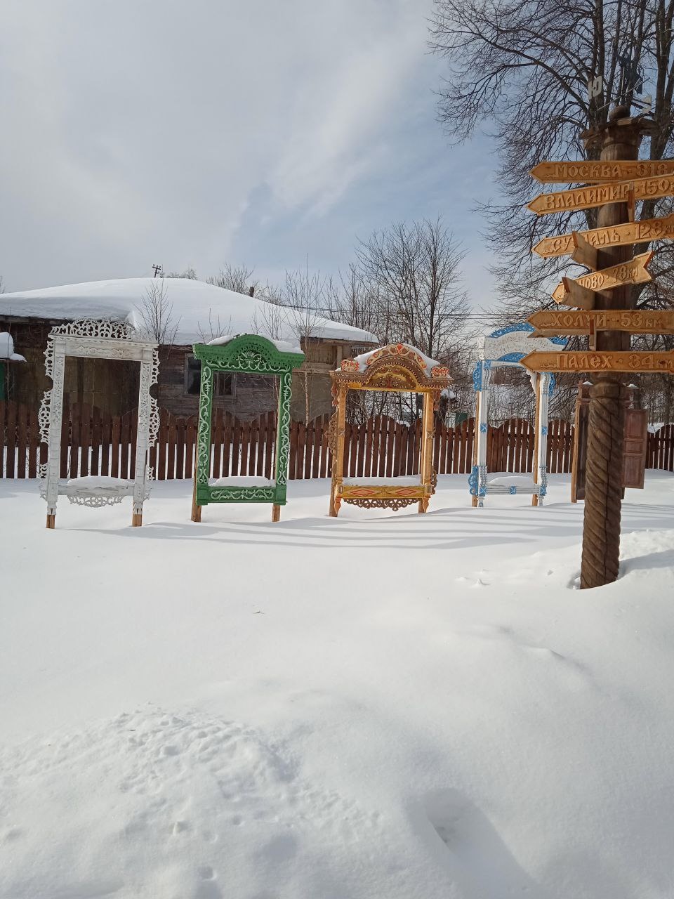Остальные наличники моложе, но не менее красивы. Сотрудницы "Лукового терема" самостоятельно их отреставрировали, и сейчас они, обретя новую жизнь и сменив облик, украшают территорию музея. Здесь можно не только полюбоваться ими, но и сделать красивые фото в необычных фоторамках. Остальные пока ждут своей участи в хранилищах. По словам хозяйки терема, экспозиция будет постоянно пополняться, благо территория музея это позволяет. А пока зима и холодно, в самом тереме работает выставка фоторабот журналистки и фотографа Елены Малковой из Родников.