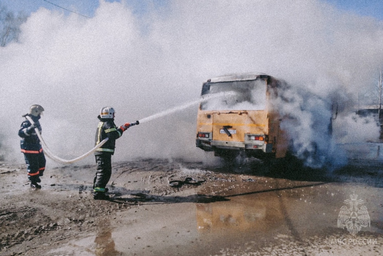 Около одиннадцати утра пятницы, 7 апреля, дежурная служба ГУ МЧС по Ивановской области получила сигнал о возгорании автобуса на улице Восточной в Приволжске.