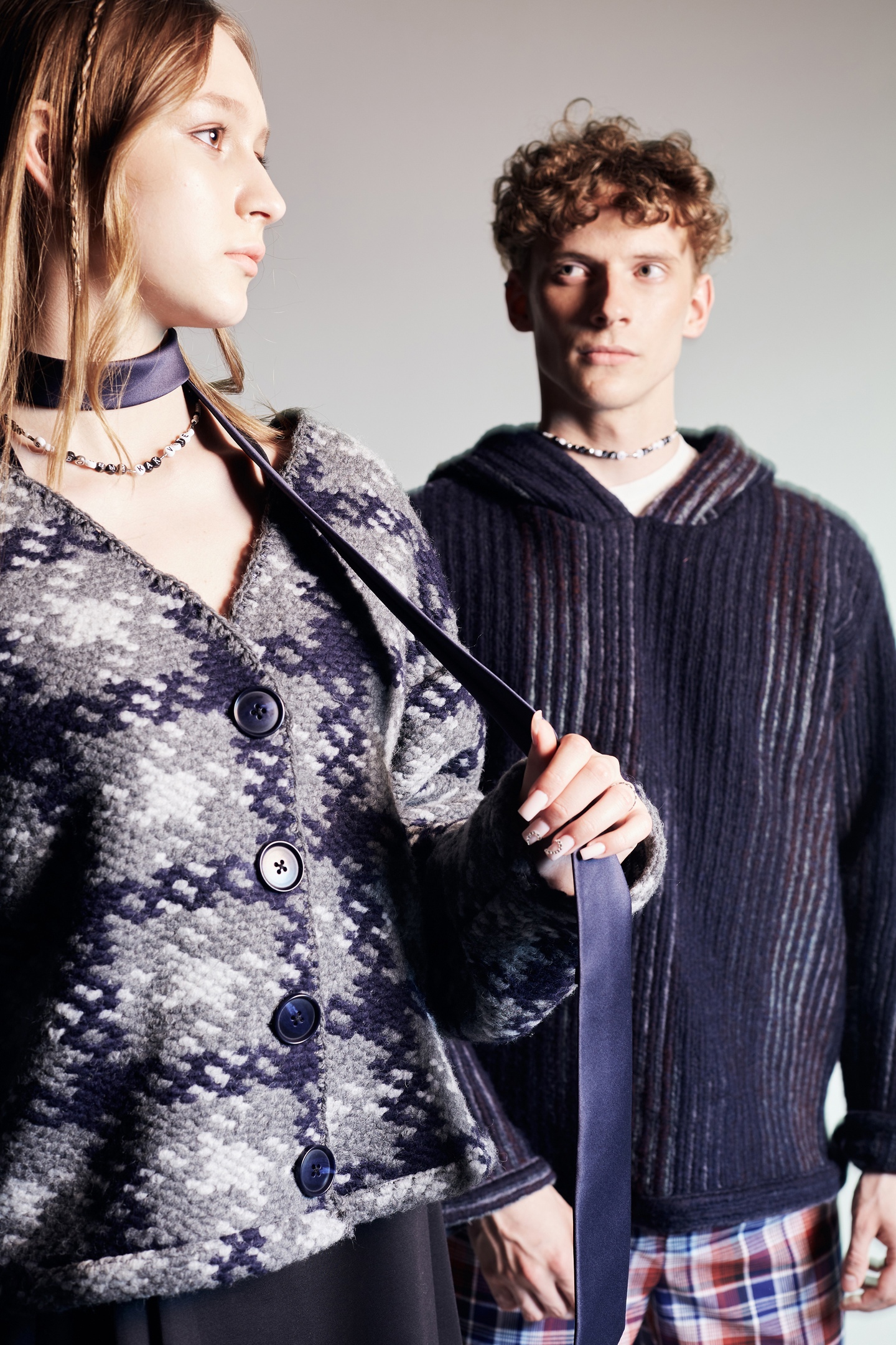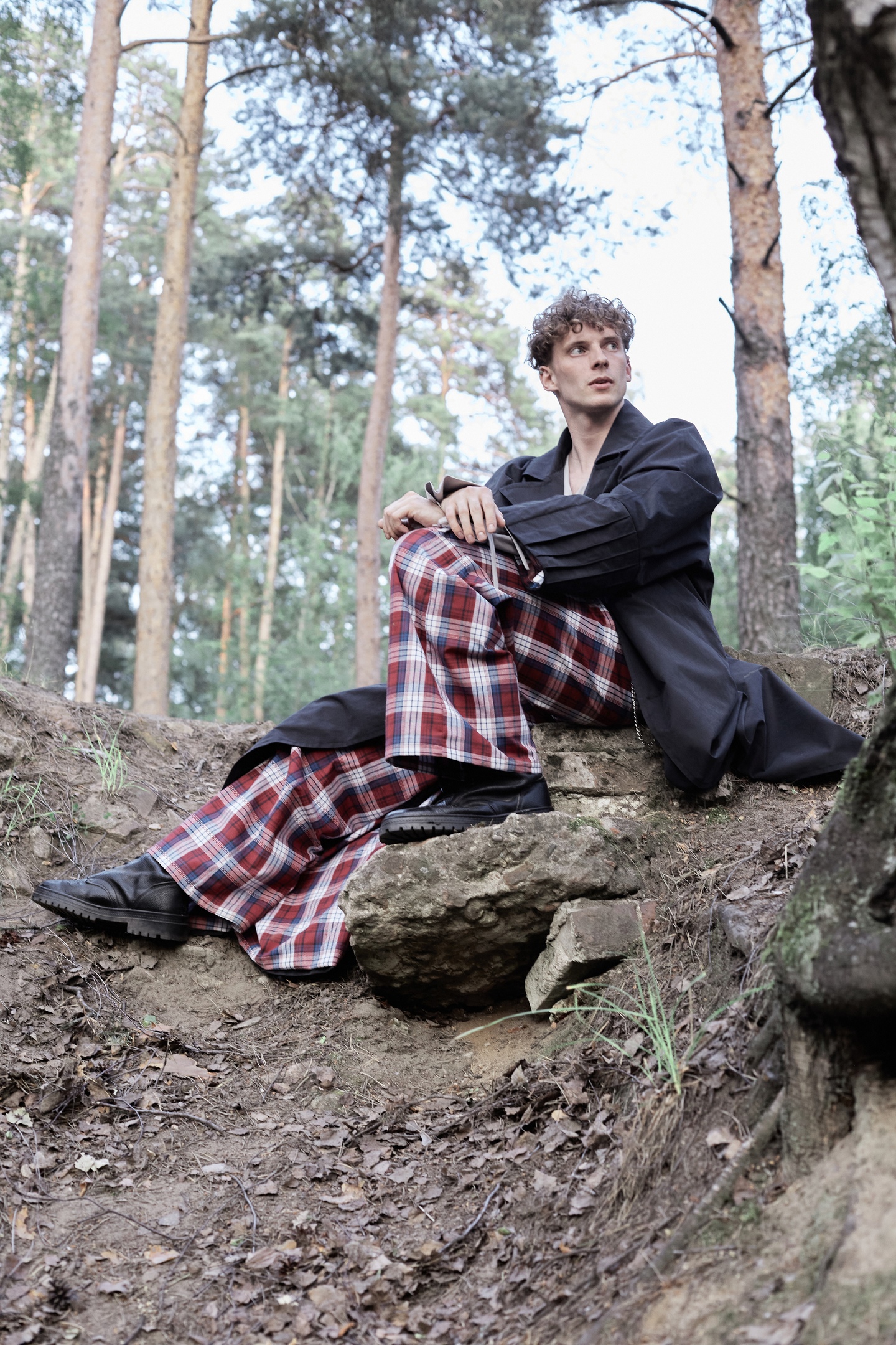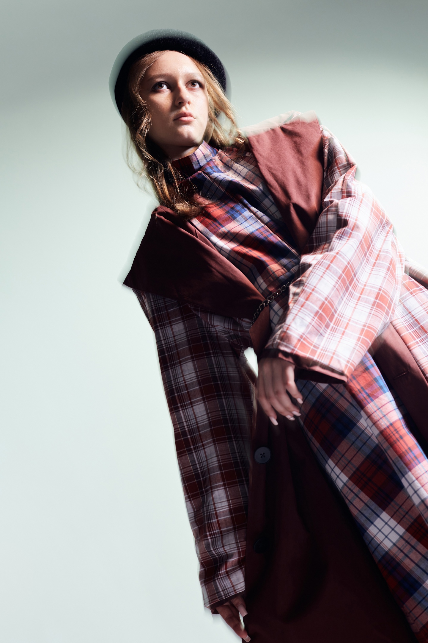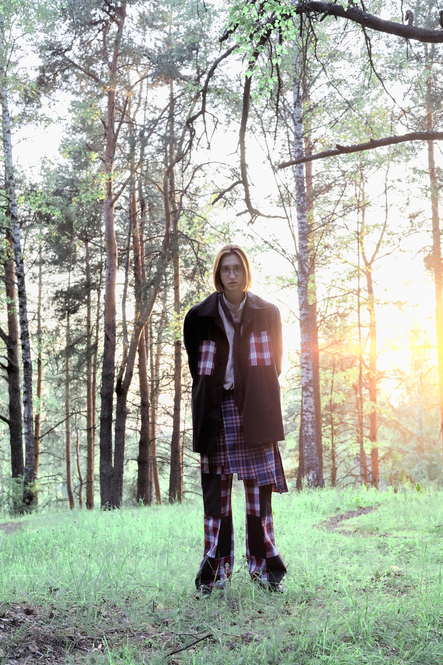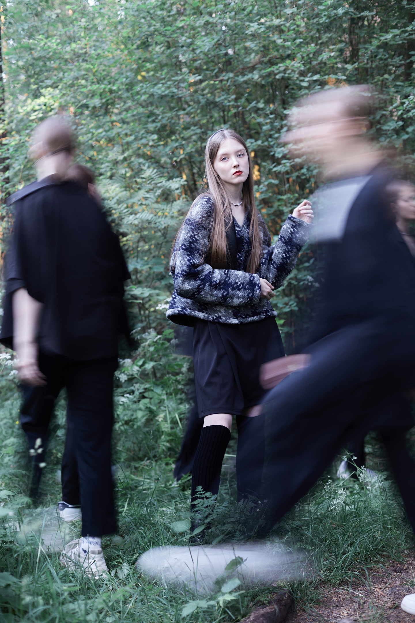 "Образы построены так, чтобы через текстуры, цвет и крой передавали внутреннее состояние человека и его переживания. Коллекция состоит из семи моделей, каждая из которых отражает частичку личности в рамках социума. Цветовая гамма в темных и приглушенных оттенках олицетворяет собой общество, а яркая клетка метафорично показывает личность, которая находится в заключении и пытается выйти наружу", − говорится в описании коллекции.