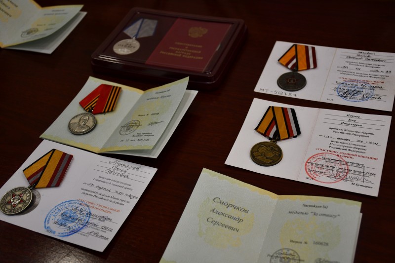 На мероприятии прошло вручение государственных наградам: медаль «"За отвагу", медаль Жукова, медали "Участник специальной военной операции" и "Участник военной операции в Сирии". "Это люди воинского долга, отваги и чести, - поделился впечатлением Александр Кузьмичёв. - Пока у нас есть такие Герои - мы выстоим и обязательно победим!"