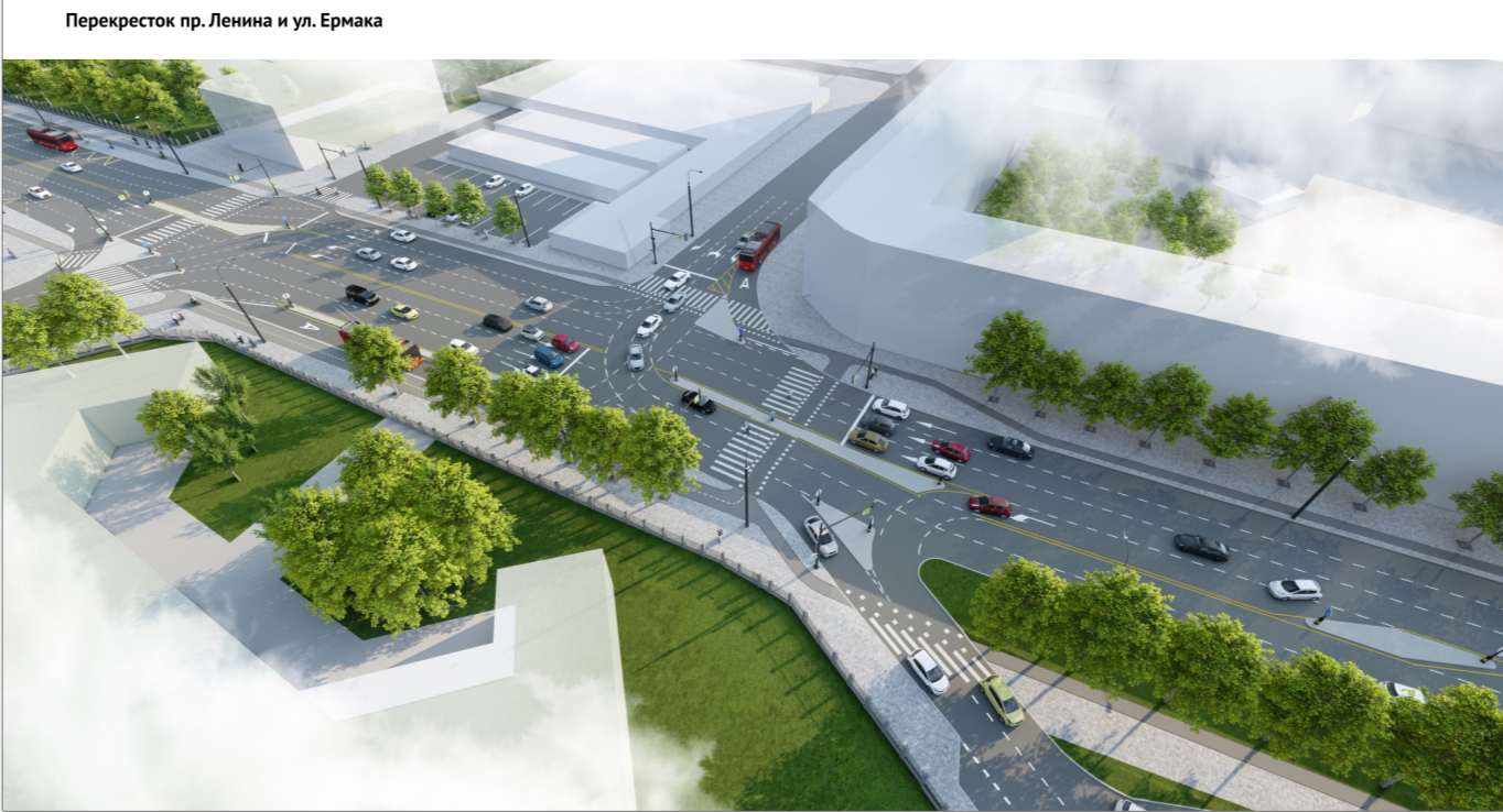 Из главного: перекресток с улицей Карла Маркса станет регулируемым, там появится светофор, для общественного транспорта для левого поворота от перекрестка с ул. Ермака на ул. К. Маркса появится выделенная полоса.