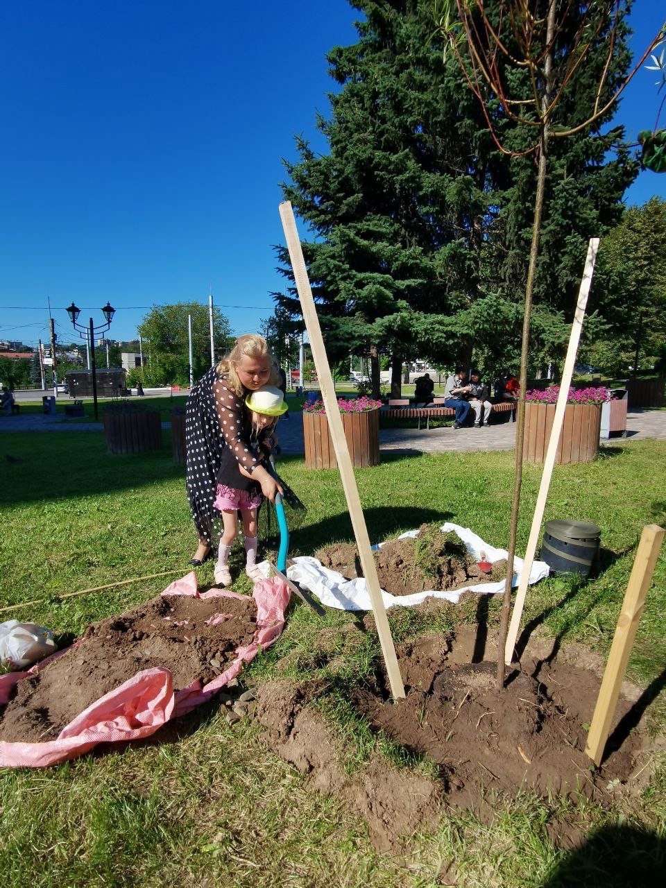 Специалисты фонда помогли семье подобрать посадочный материал, найти подходящее место и правильно посадить дерево.