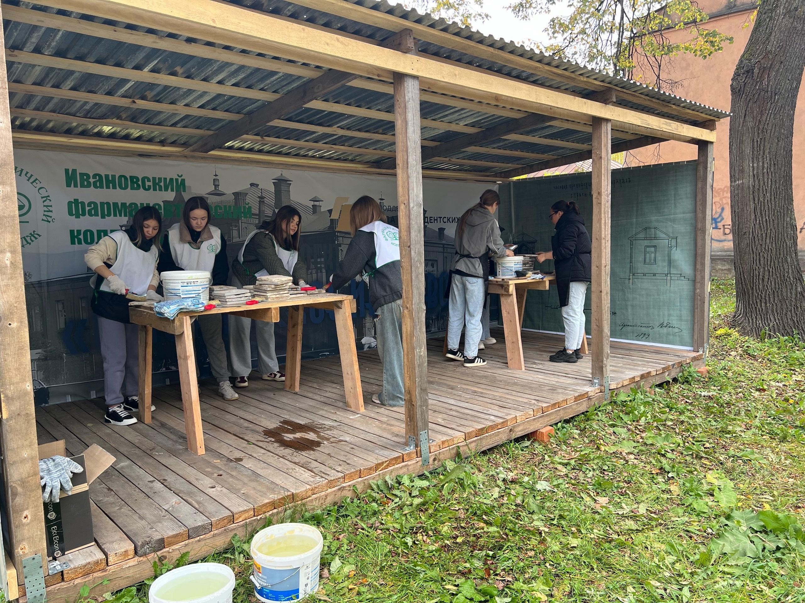 Студенты фармацевтического колледжа в Иванове поучаствовали в реставрации своего учебного корпуса − объекта культурного наследия, бывшего "Хирургического корпуса" больницы для мастеровых и рабочих на пр. Ленина, 112. Ребята чистили кирпич, решетки ограды, метлахскую плитку. Об этом сообщил Иван Корнилов, руководитель компании "Ивановореставрация", которая и ведет реставрационные работы на старинном здании.