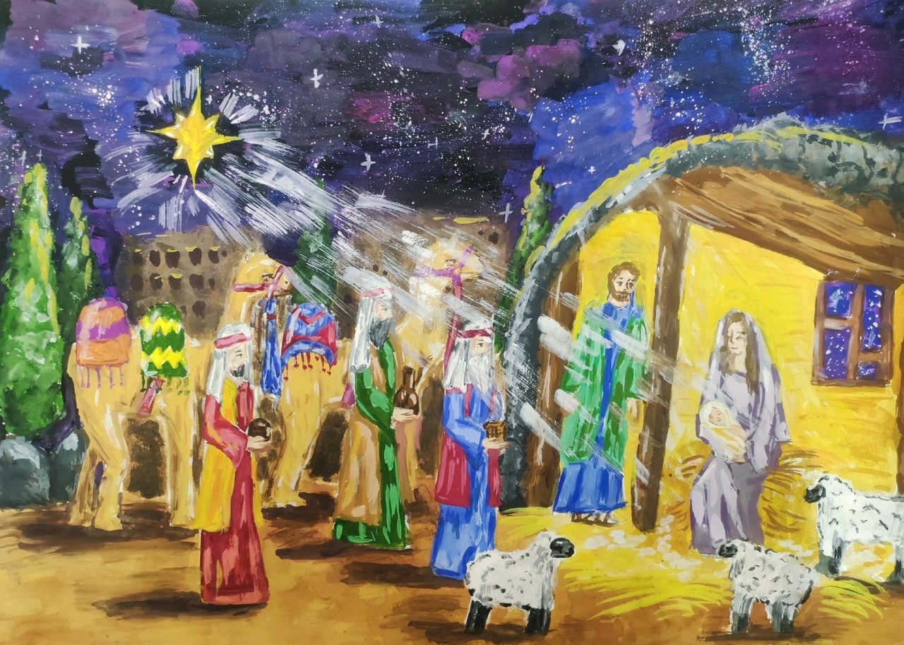 Поощрительный приз. Краскова Алиса Вячеславовна, 10 лет. "Рождение Христа"