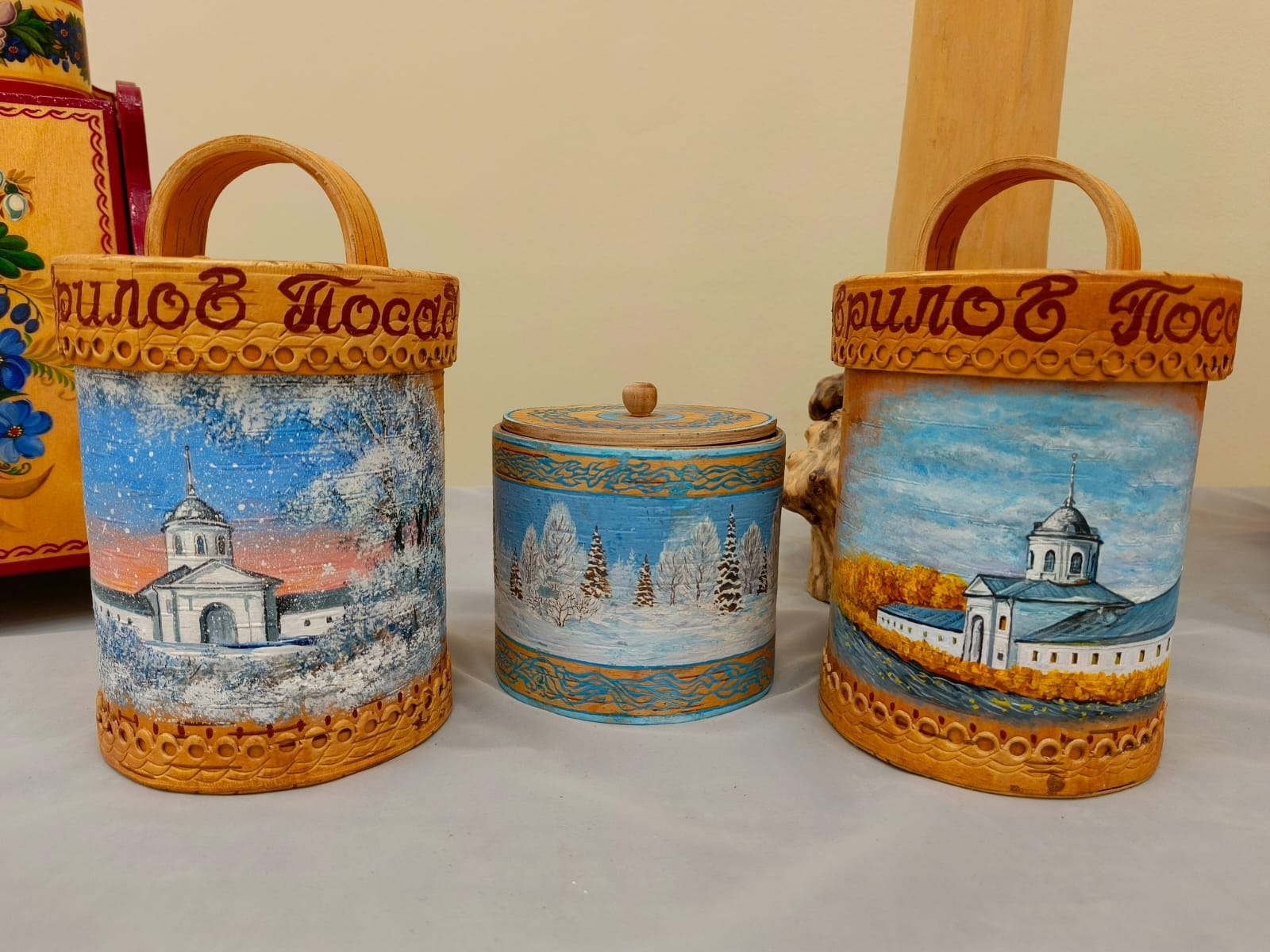 "Ассортимент изделий студии довольно широк – это и традиционные кухонные доски, панно, пасхальные яйца, броши, карнизы, подставки под цветы, и интерьерные панно с росписью на бересте, и современная линейка сувениров для туристов и гостей района, – говорится в сообщении. – Многие ребята благодаря занятиям росписью по дереву выбрали творчество своей профессией и теперь работают в мастерских и на предприятиях народно-художественных промыслов".