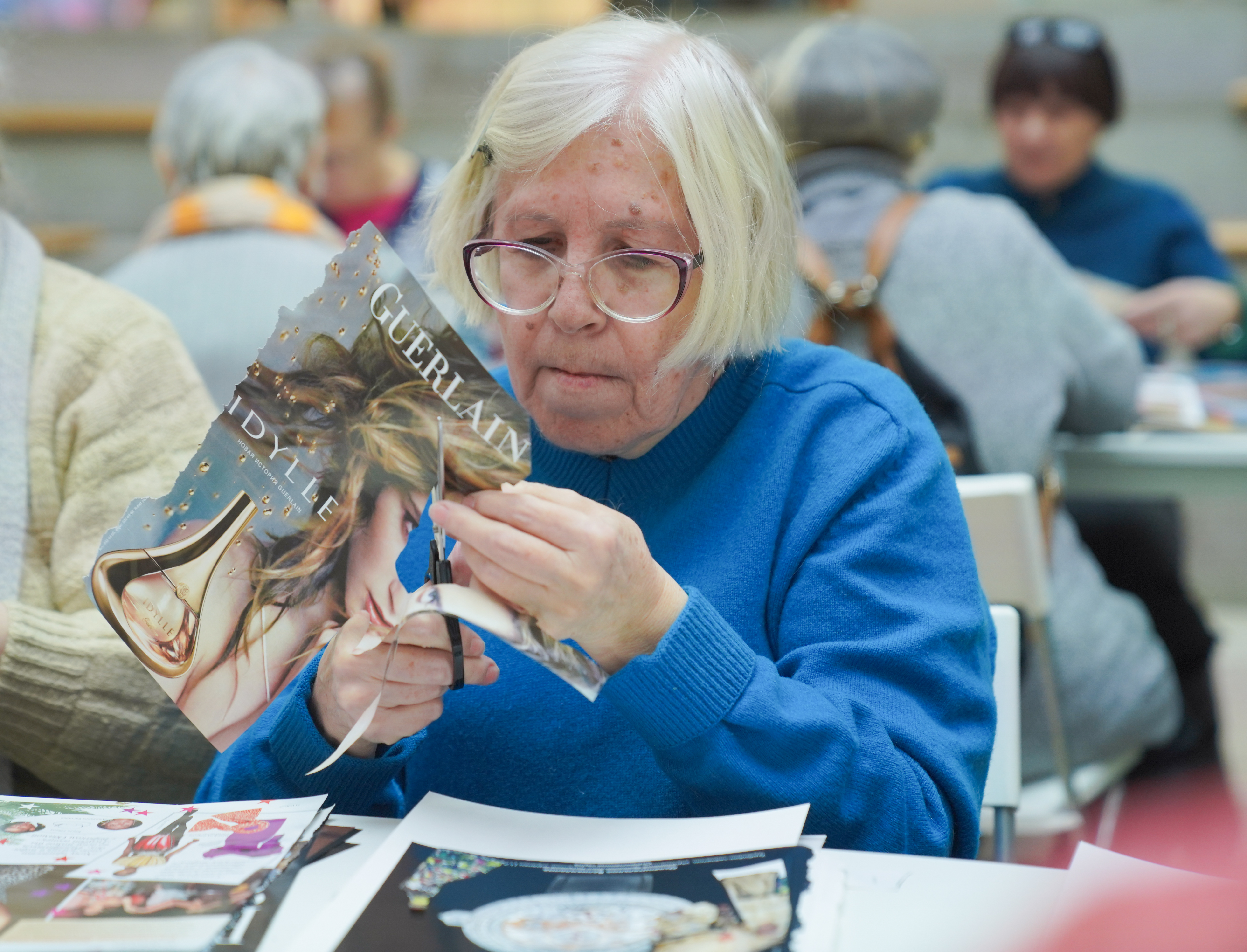 "Что нам это дает? В "серебряном" возрасте люди часто просто смотрят сериалы или слушают музыку, а здесь развивается мозг. На мастер-классах Кирилла мы думаем, как составить образ, какую картинку создать, вырезаем ножницами – это 1,5–2 часа мозгового штурма. Это, как мне кажется, очень помогает нам в продлении жизни. Кирилл задает тему – Новый год, свое видение известной картины и т.д., и мы должны создать свой индивидуальный образ. Здесь, кроме общения, мы получаем ещё работу мозга, общение друг с другом, взаимодействие", – рассказала Наталья Борискова.