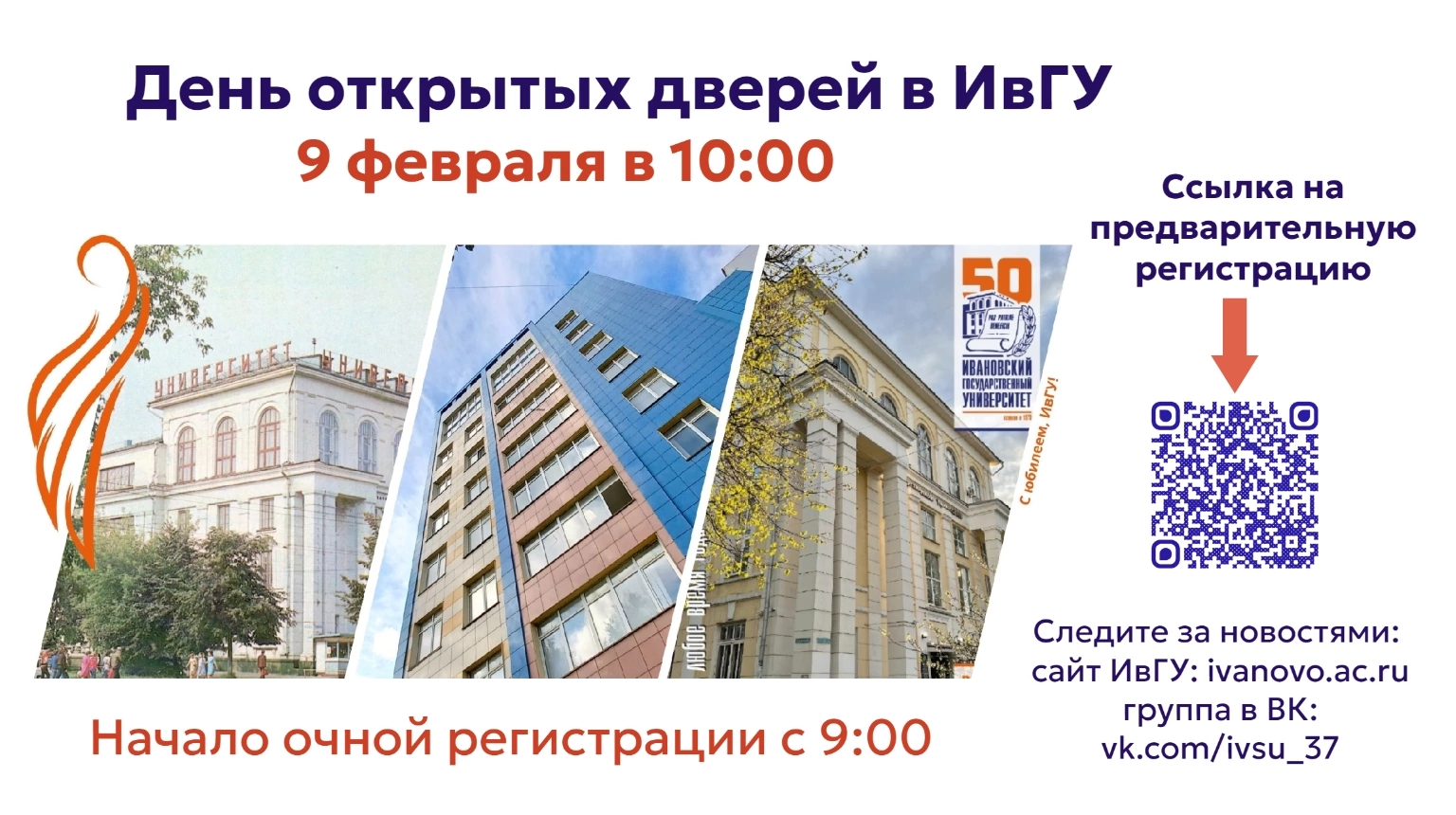 В воскресенье, 9 февраля, Ивановский государственный университет проведет День открытых дверей, рассказал Известно.ру проректор ИвГУ по молодежной политике Никита Сорокин.