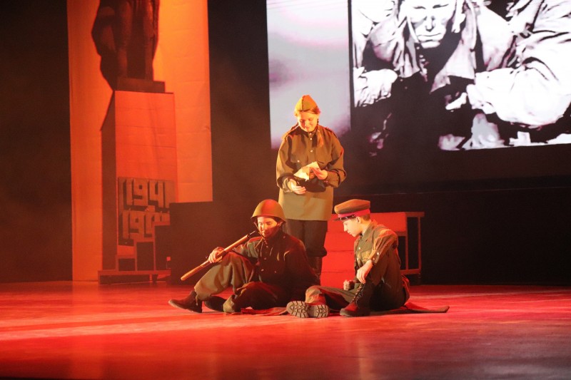 С первых минут памятного мероприятия зрители погрузились в атмосферу эпохи: предвоенный вальс ансамбля "Улыбка" напомнил о мирных днях, оборванных войной, а песня "До свидания, мальчики" в исполнении юных артистов стала пронзительным напоминанием о тех, кто ушёл на фронт прямо со школьной скамьи.