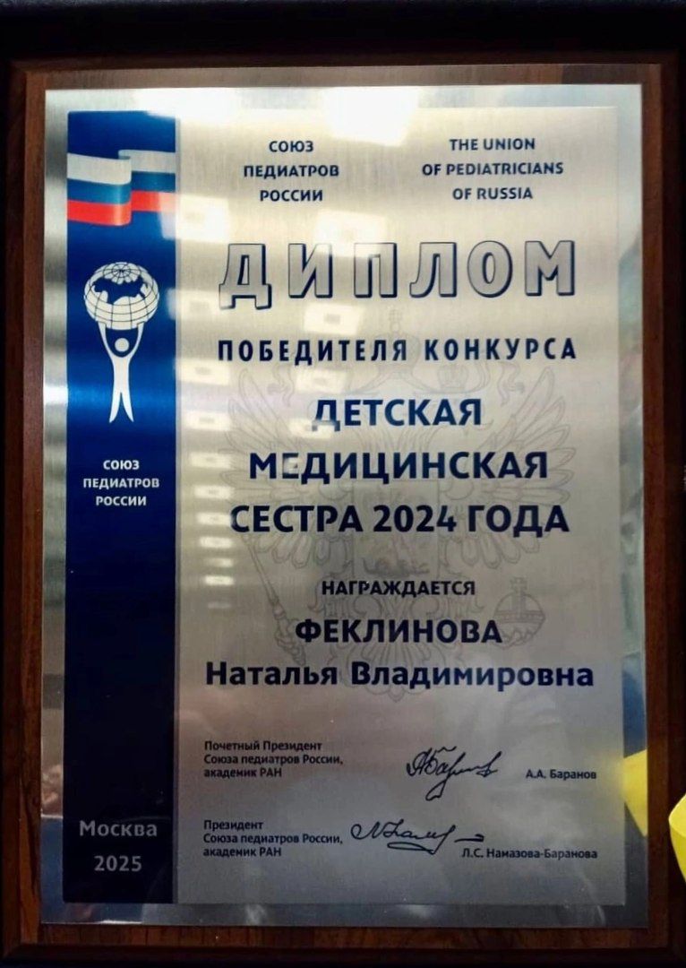 Наталья Феклинова из города Иваново победила в конкурсе "Детская медицинская сестра 2024 года", организованном Союзом педиатров России, сообщает пресс-служба Правительства региона в соцсетях.