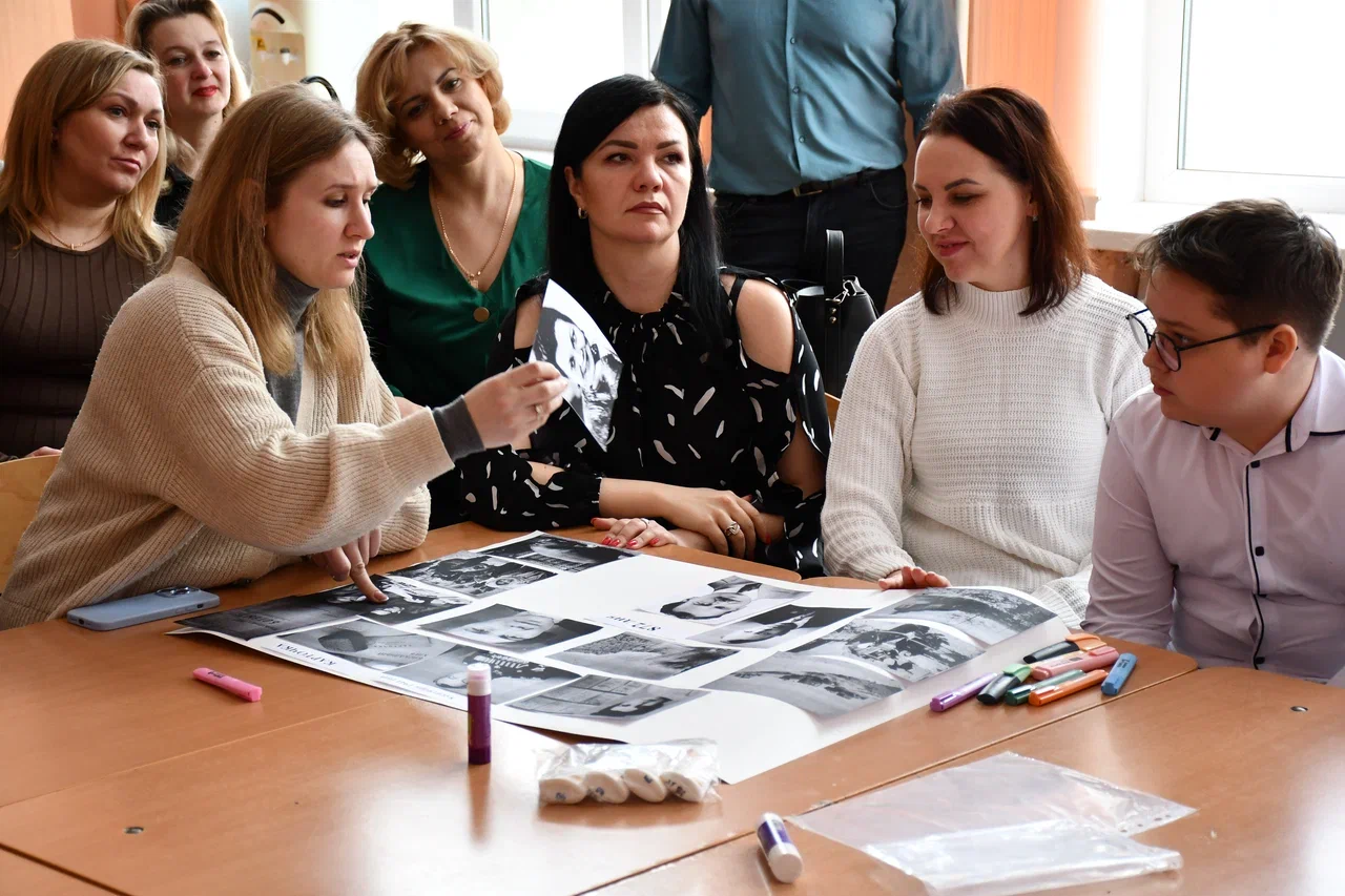 Педагоги школы № 54 научили гостей мероприятия использовать современные технологии. На мастер-классе "Альбом Памяти" участники с помощью искусственного интеллекта оживляли фотографии своих родных и близких, соединяя их образы с современными поколениями.