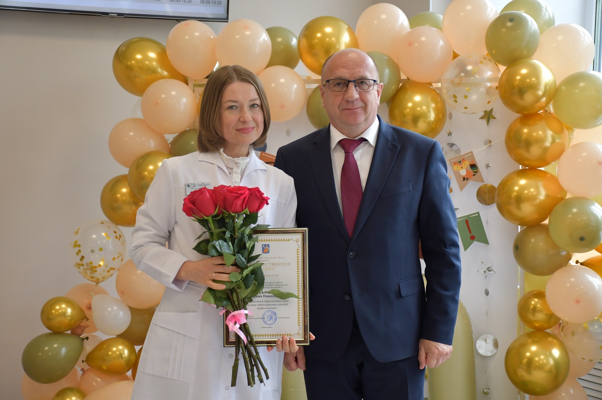 В знак признания добросовестного труда и вклада в защиту здоровья наших детей руководитель Ивгордумы вручил сотрудникам центра городские награды.