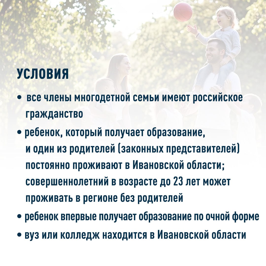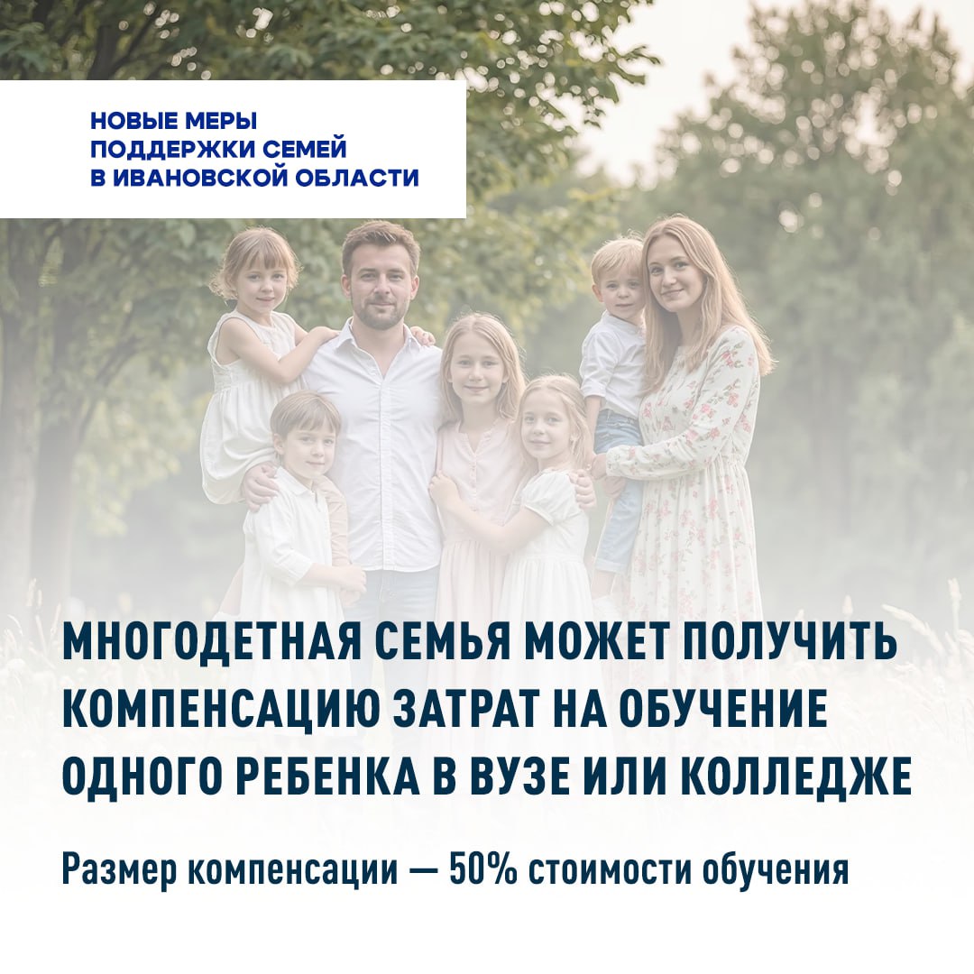 Более 100 многодетных семей Ивановской области вернули половину стоимости обучения детей в колледжах и вузах по новой региональной программе, проинформировали в пре5сс-службе регионального правительства.