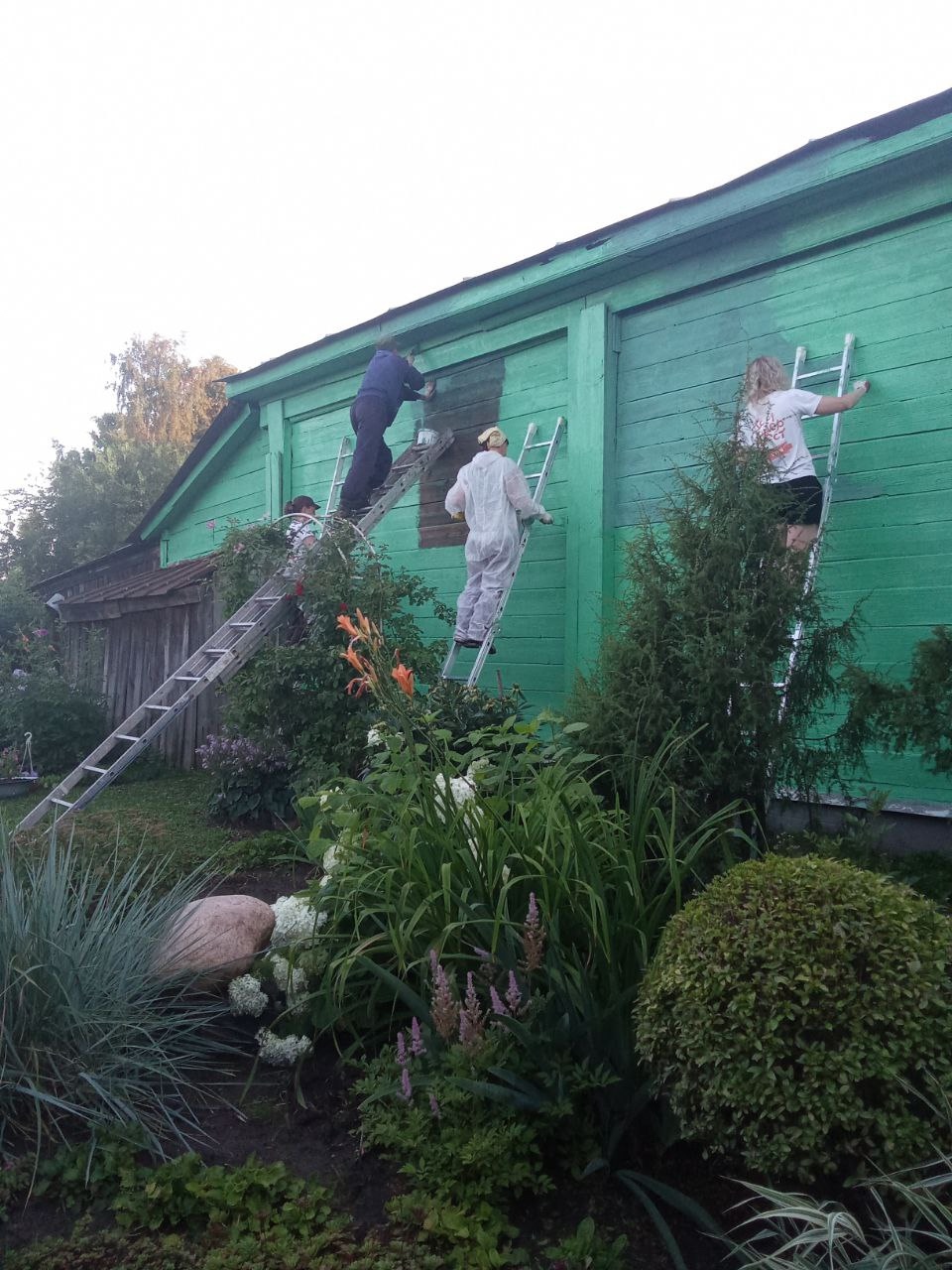 Буквально на днях работы по восстановлению столетнего дома были завершены – волонтеры провели колоссальную работу – они не только зачистили бревна от старой краски, ошкурили фасад, но и подобрали краску, собрали на нее средства и подарили дому нарядный и свежий вид.