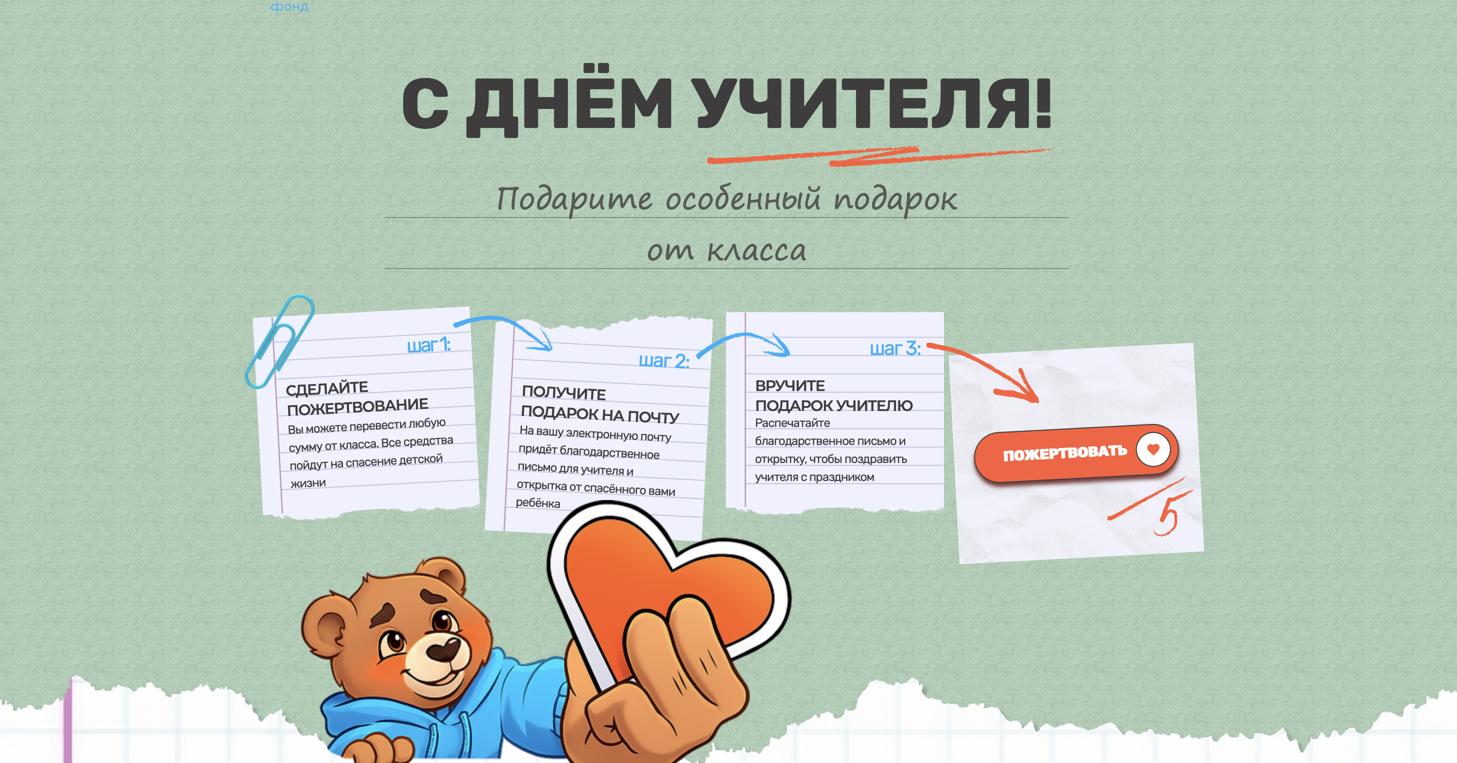 "Часто подарки учителям — это цветы или сладости, которые быстро забываются. Мы предлагаем превратить поздравление в реальное доброе дело, — комментирует представитель фонда "Алёша". — Такой жест — это высшая форма благодарности. Он показывает, что учитель смог привить своим ученикам не только знания, но и ценности сострадания, взаимопомощи. Для педагога это самая важная оценка его труда".