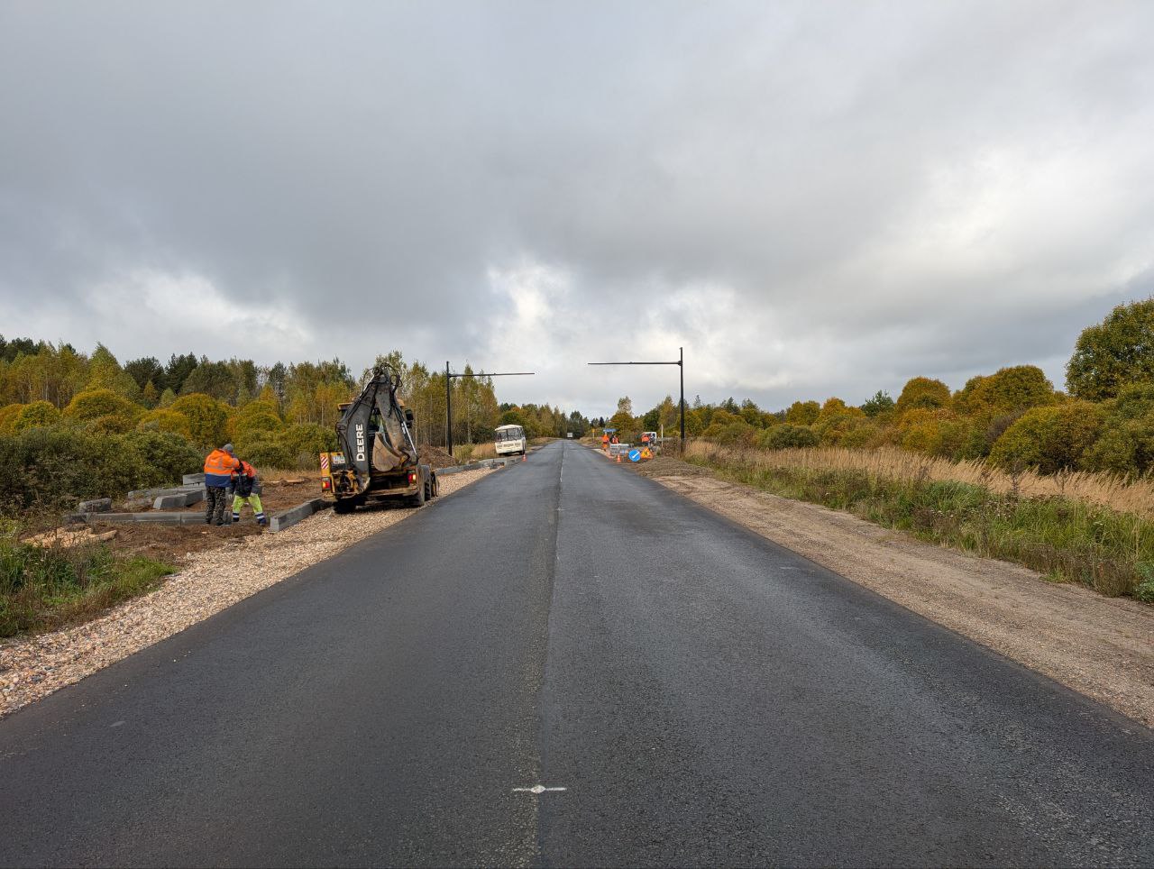 Подрядчик уложил два слоя асфальта, укрепил обочины и отремонтировал водопропускные трубы. В поселке Ново-Писцово и деревне Семигорье установили уличное освещение протяженностью 2 км. Сейчас рабочие завершают обустройство тротуаров, остановок и наносят дорожную разметку. Техническая готовность объекта составляет 98%.