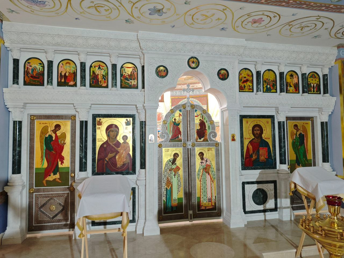 Палехские художники смонтировали каменный иконостас для Астраханского храма