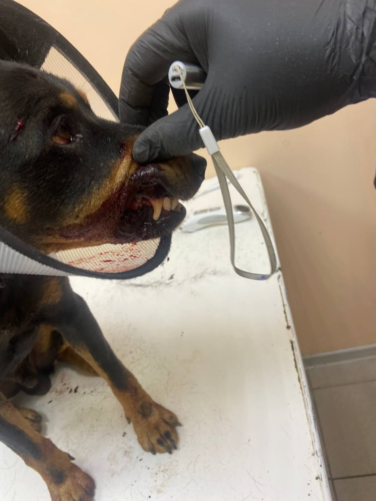 У собаки черепно-мозговая травма, перелом таза и двух ребер. Специалисты приюта просят помочь найти хозяев собаки – пес поступил в приют в ошейнике, они предполагают, что ягдтерьер потерялся и попал в беду.