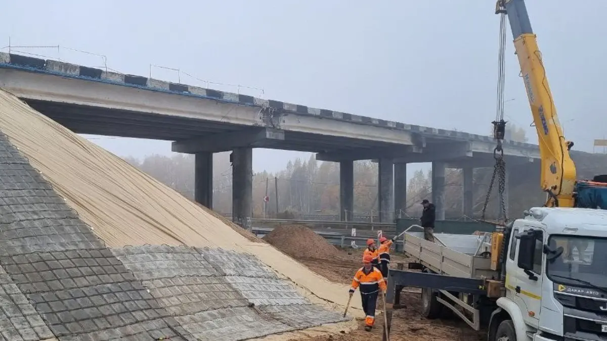 На сегодняшний день подрядчик завершил демонтаж перильного ограждения, устранил размывы насыпи и сформировал геометрические параметры конусов около одной из опор. Ведется работа по демонтажу консолей и подготовительные работы для ремонта балок.